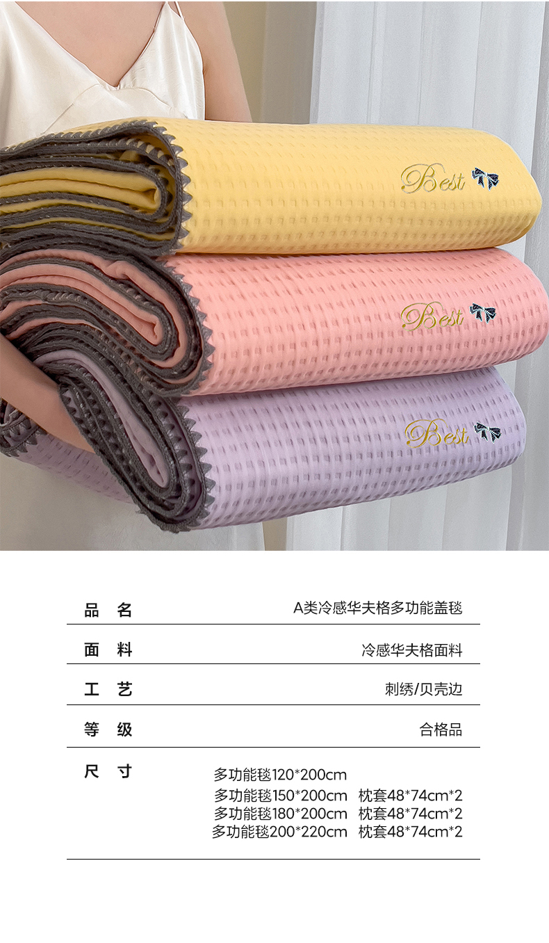 (总)米菲 2025新款刺绣华夫格多功能毯盖毯毯子,组合图仅做展示,夏天-浅灰,夏天-抹茶绿,夏天-蜜桃,夏天-浅紫,夏天-嫩粉,夏天-米黄