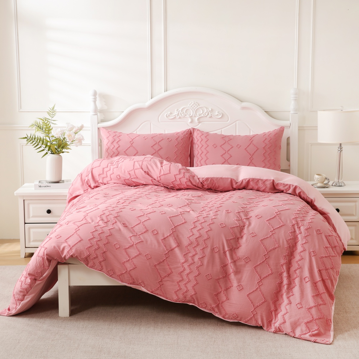 当前位置: 91家纺网 > 商品网购 > 跨境商品 > 床上用品(Bedding) > 床品套件(Bedding Comforter Sets) > 子不语家纺2025新款跨境外贸 剪花簇绒纯色三件套亚马逊Temu速卖 通Shein沃尔玛专供 菱形波浪粉