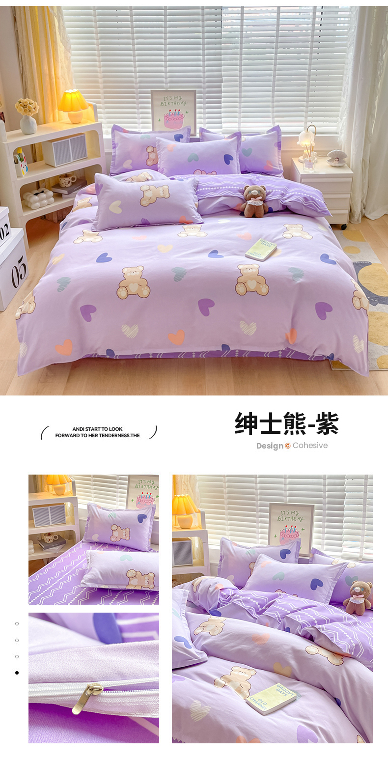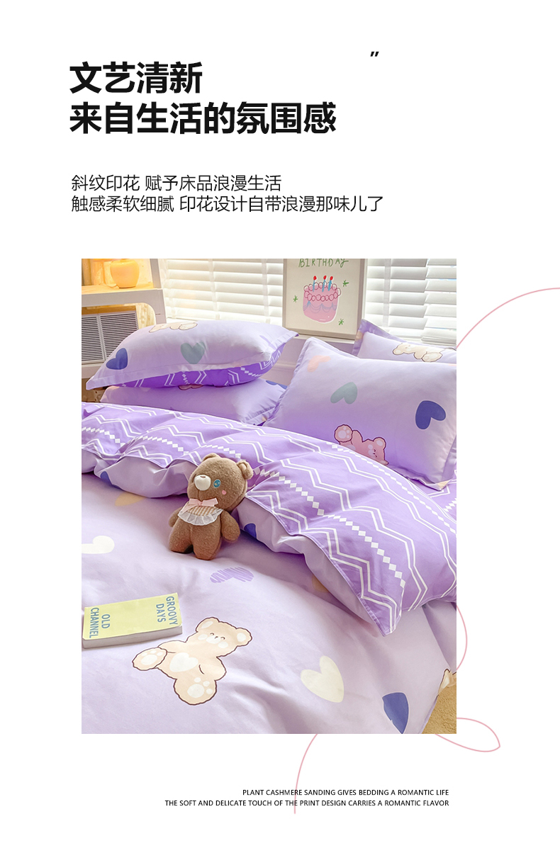 当前位置: 91家纺网 > 商品网购 > 床品套件 > 四件套 > 普通磨毛四件套 > 简冠家纺 2025新款植物羊绒磨毛四件套 绅士熊-紫