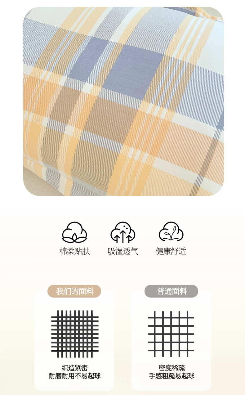 商品名称:雨彤家纺 2025年新款A类条纹水洗棉枕套 科曼格