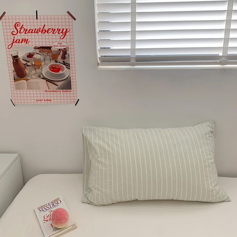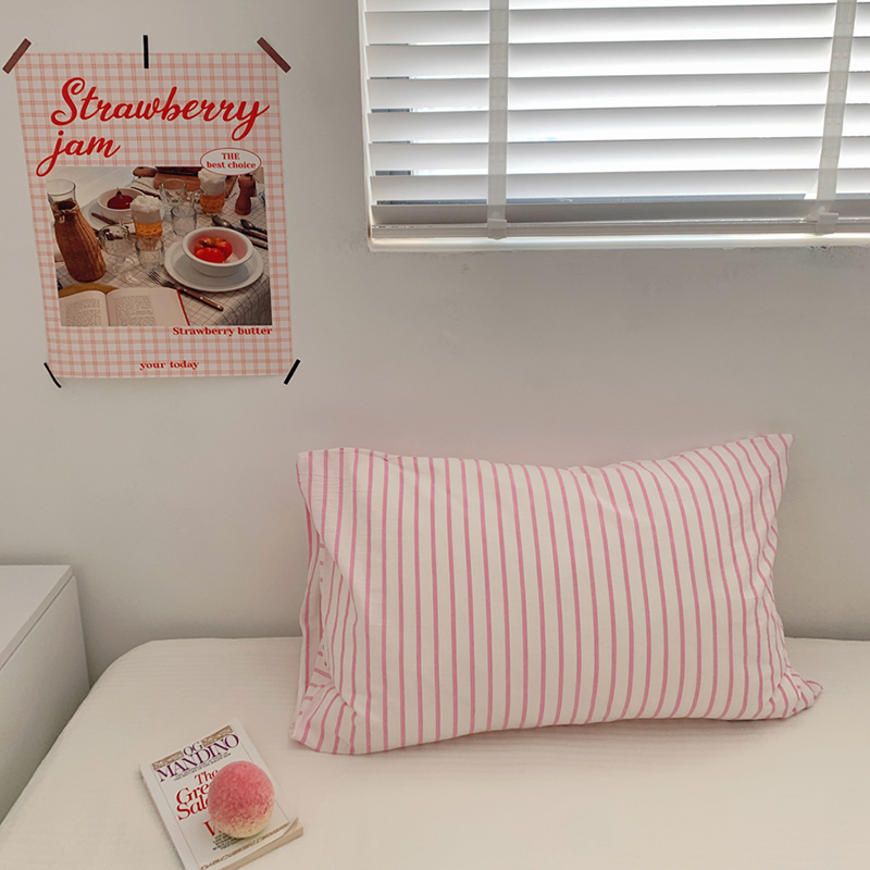 商品名称:柚可家居 2024新款水洗棉条纹系列单枕套-系列四 细竖条红色