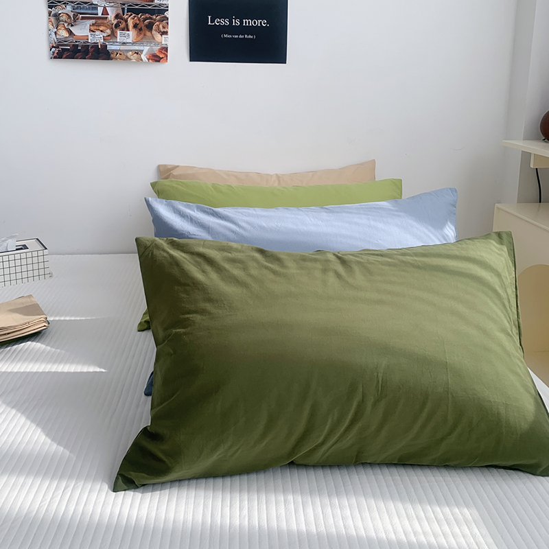 柚可家居 2024新款纯色水洗棉40支全棉色织单枕套-系列一 抹茶绿
