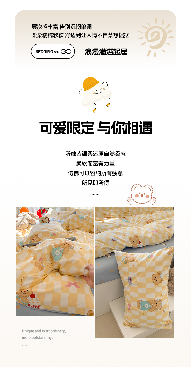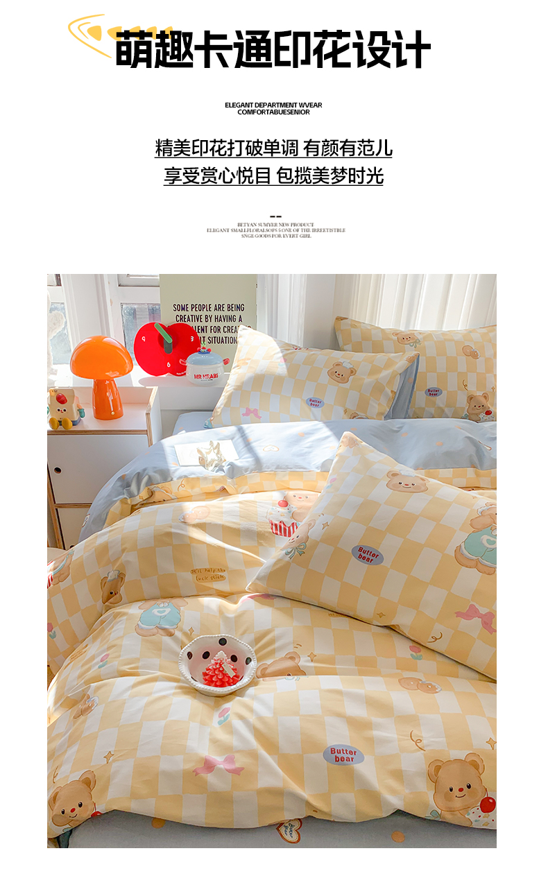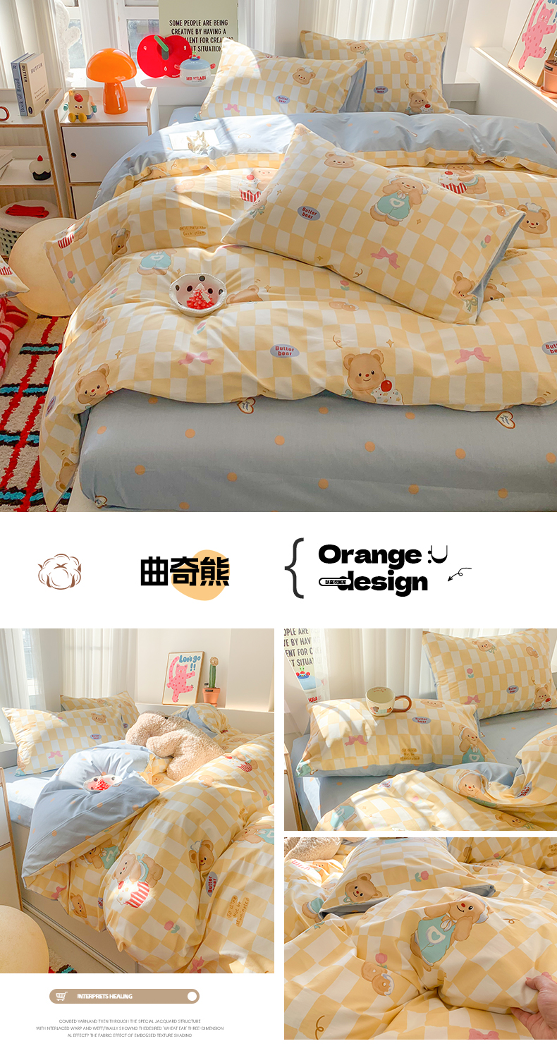 爱丽丝2025新款全棉卡通印花四件套 曲奇熊