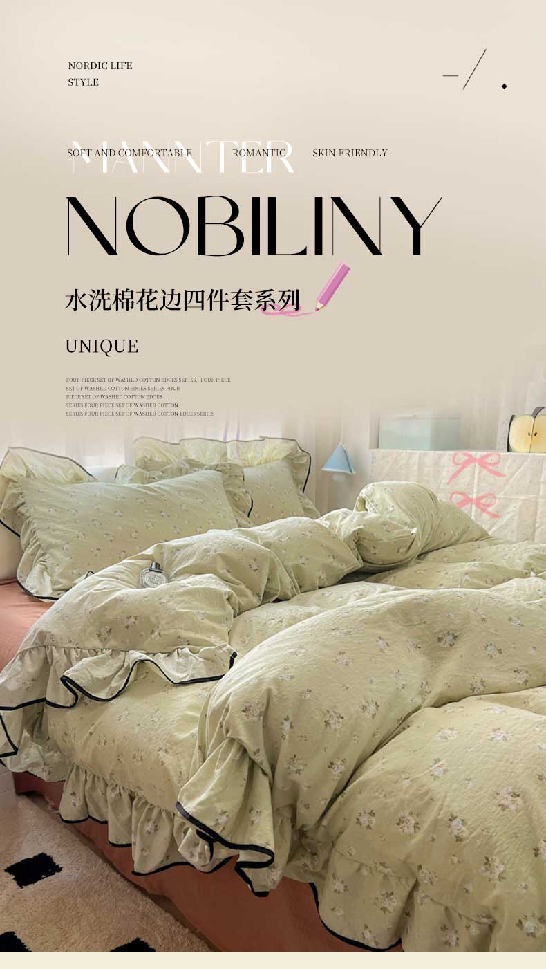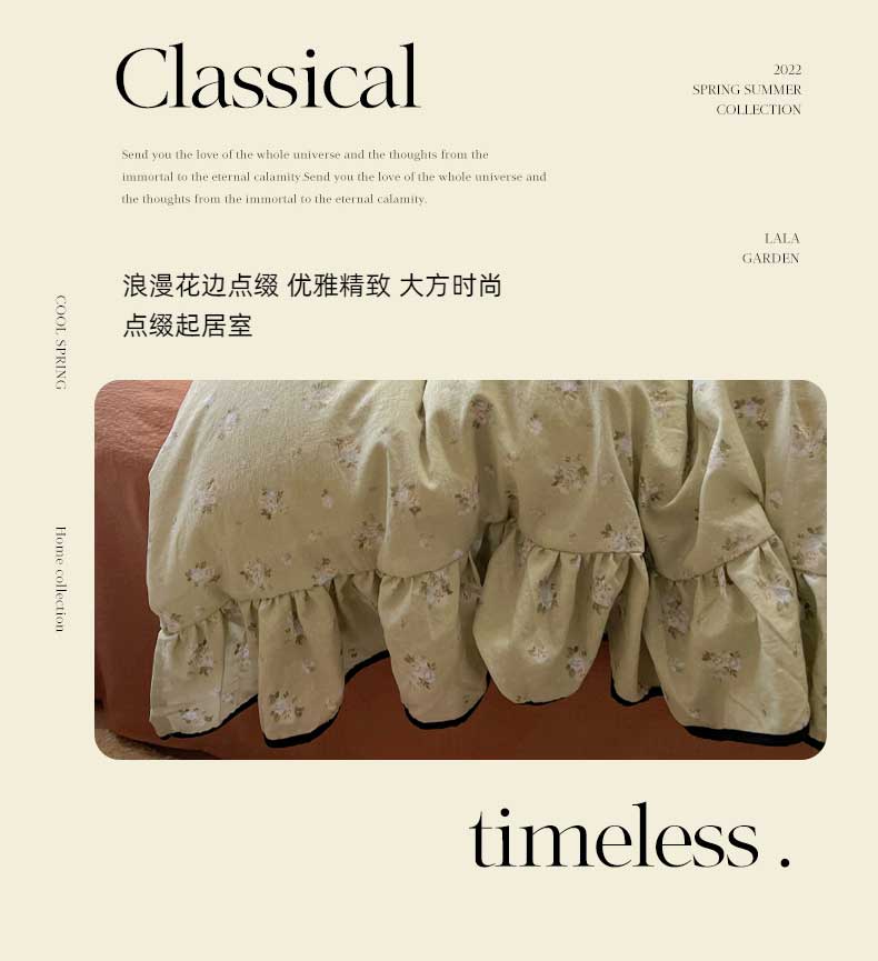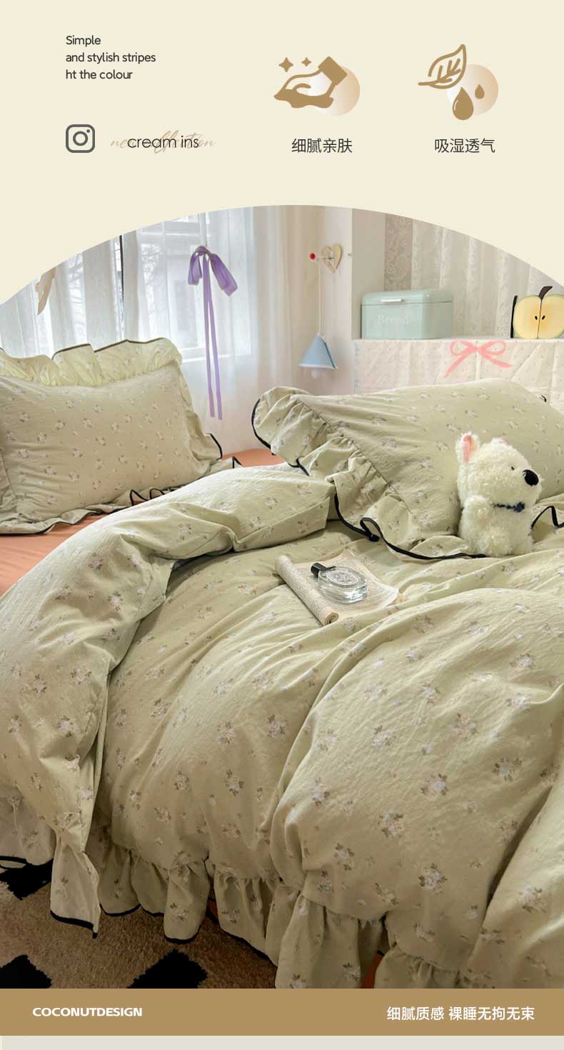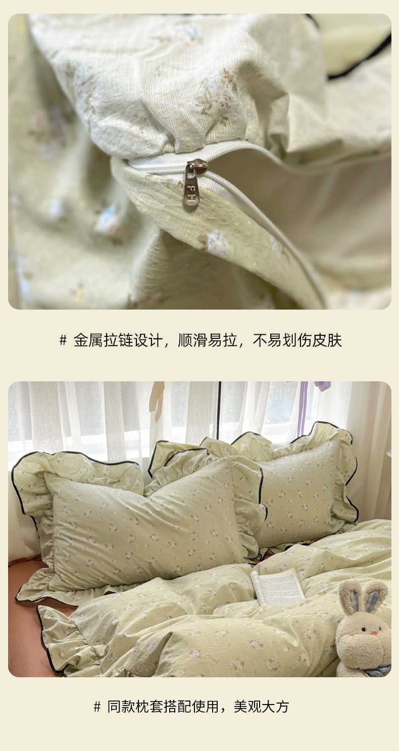 当前位置: 91家纺网 > 商品网购 > 床品套件 > 四件套 > 水洗棉四件套 > 繁花家居 2025春夏新款学生季韩式云感针织棉大花边木耳边四件套 早春来信