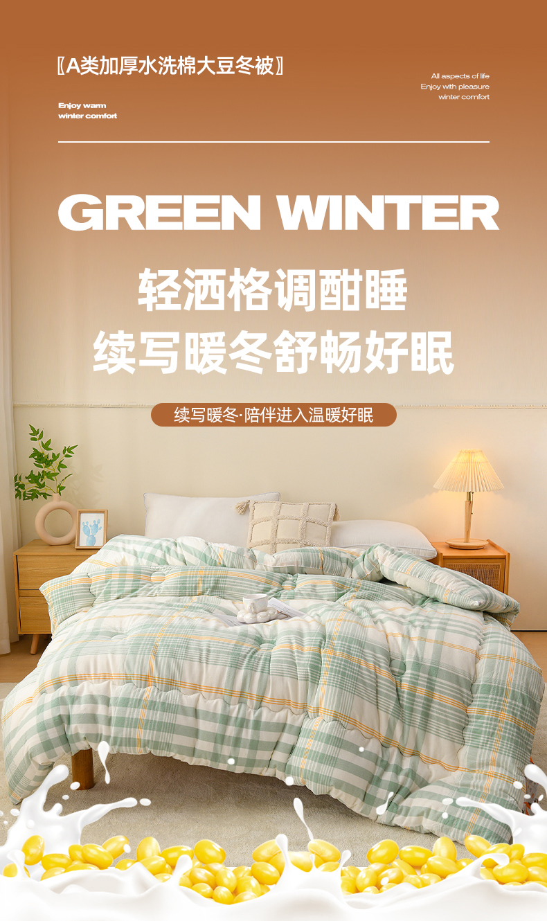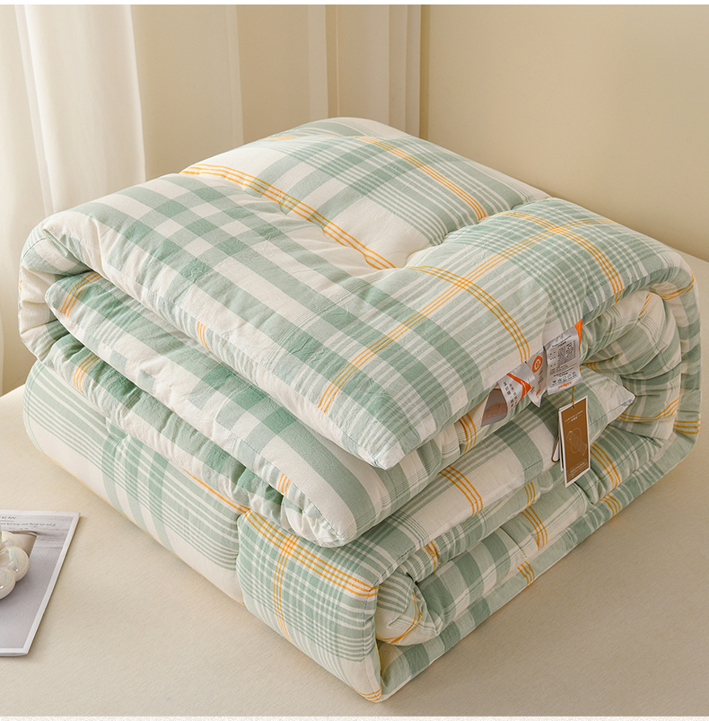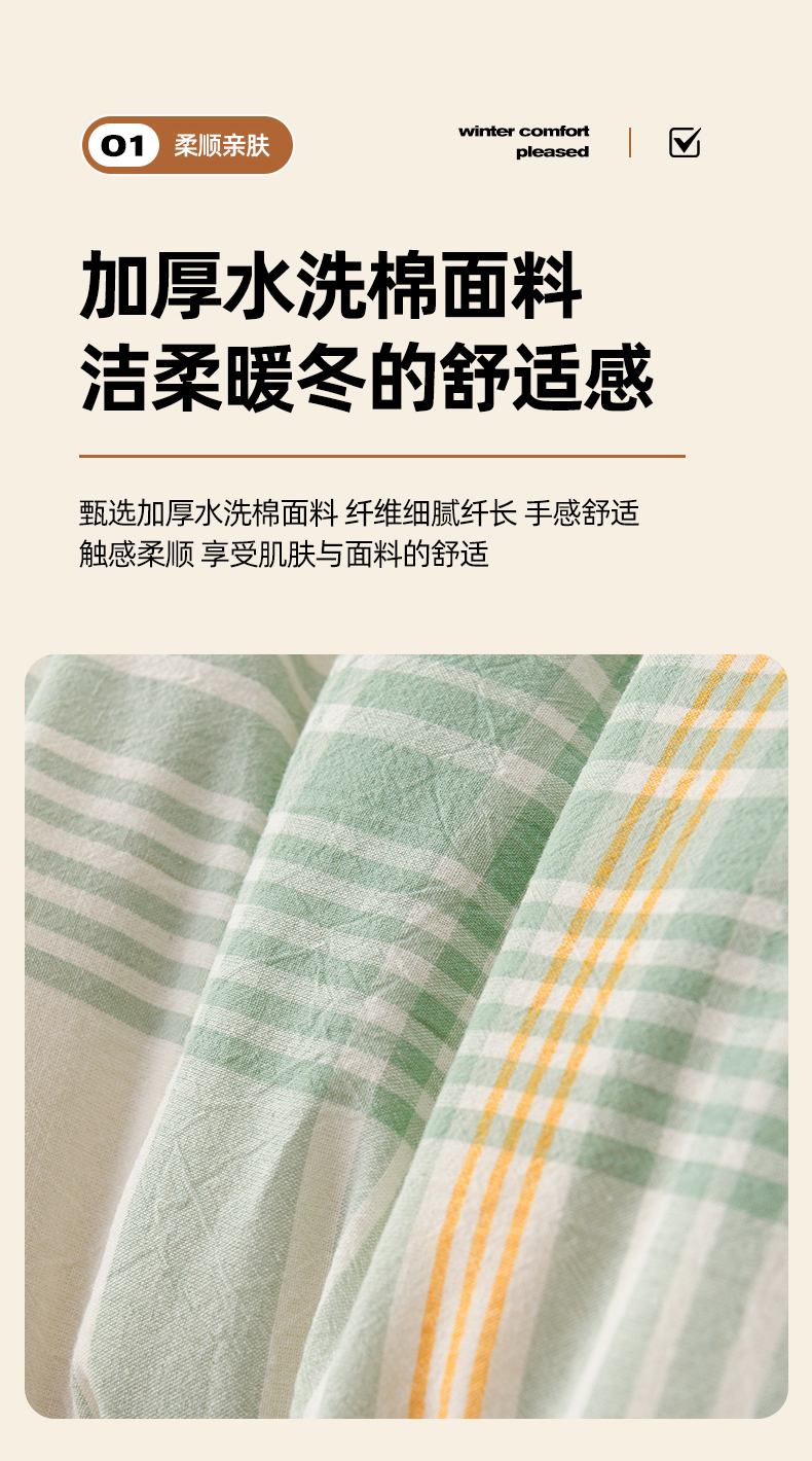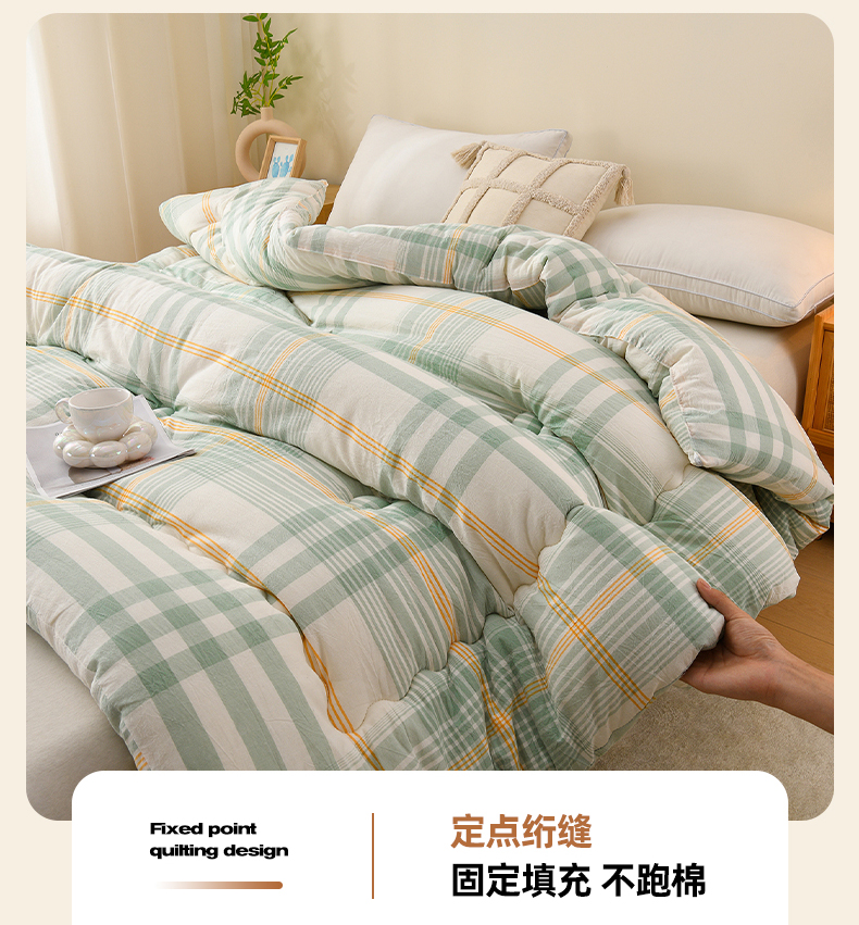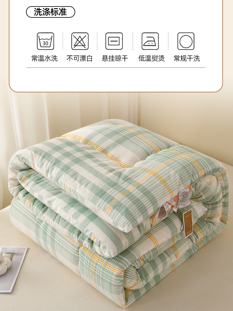 (总)易展2025新款无印水洗棉格子大豆冬被,格粉蓝,格浅绿,浅格橙,浅轻粉,轻夏绿,深橙格,湛靓蓝,缀纹黄