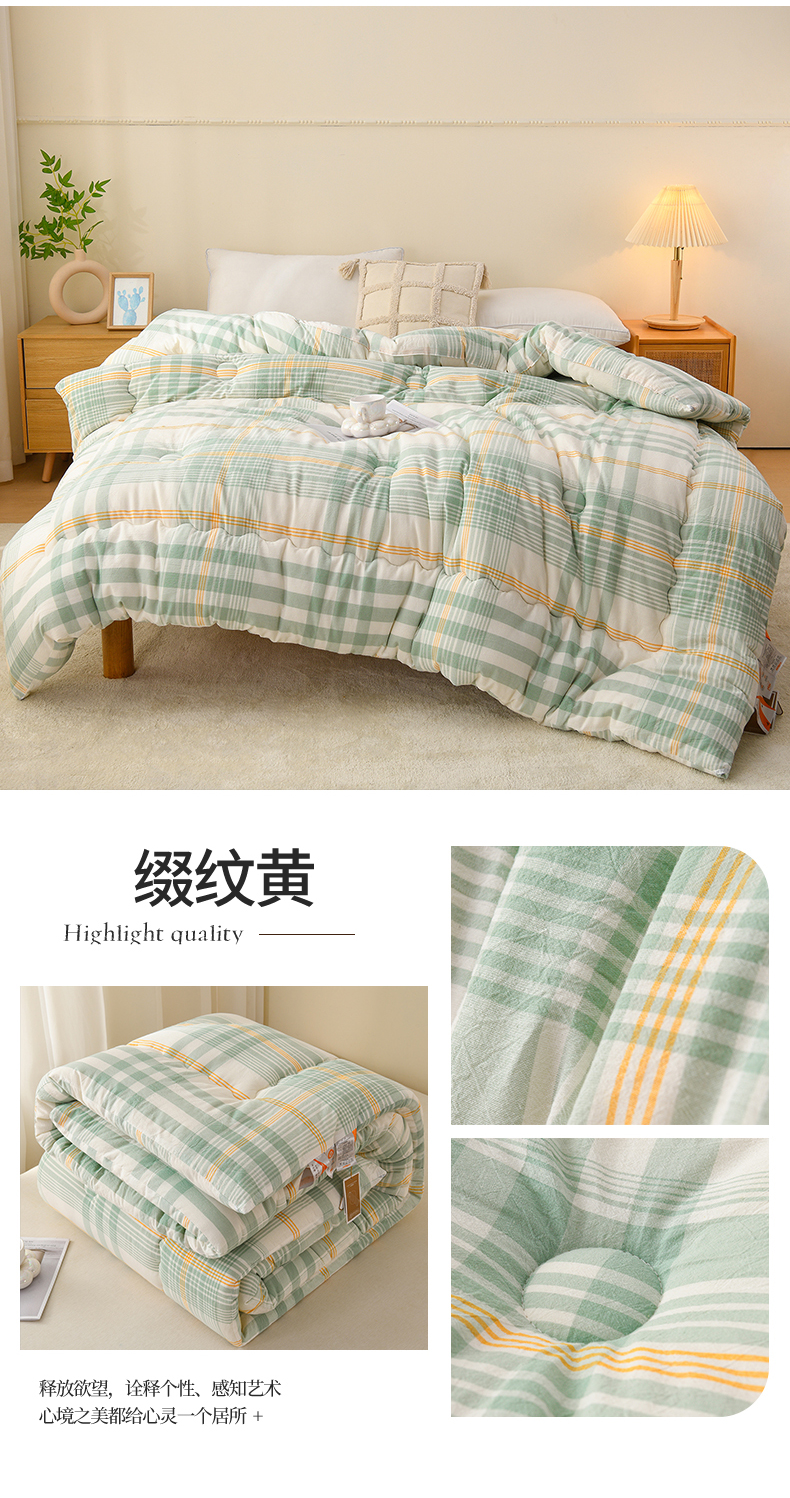 • 91家纺网 家纺一手货源 找家纺 易展2025新款无印水洗棉格子大豆冬被 缀纹黄