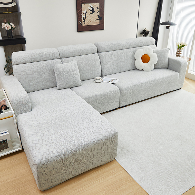 丝绮鹿 2025新款雕花绒水立方沙发套松紧款(贵妃图) 深灰