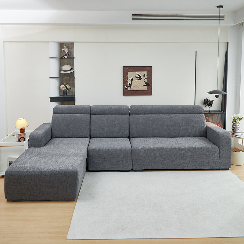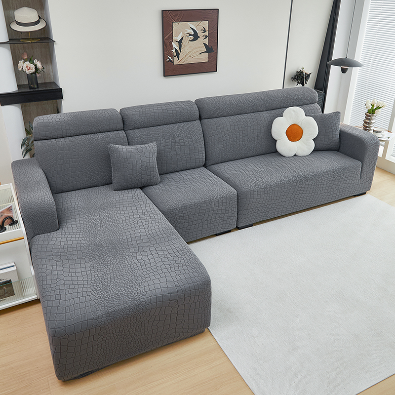 商品名称:丝绮鹿 2025新款雕花绒水立方沙发套松紧款(贵妃图) 深灰