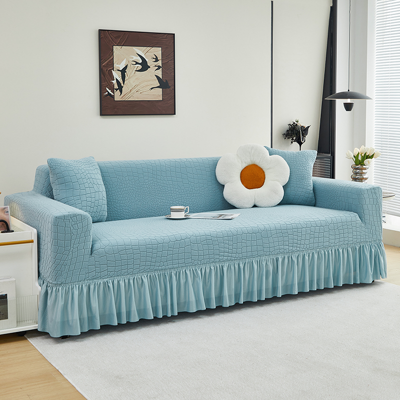 当前位置: 91家纺网 > 商品网购 > 居家布艺 > 坐垫/椅垫/沙发垫 > 沙发垫 > 丝绮鹿 2025新款雕花绒水立方沙发套裙边款(三人图) 淡蓝
