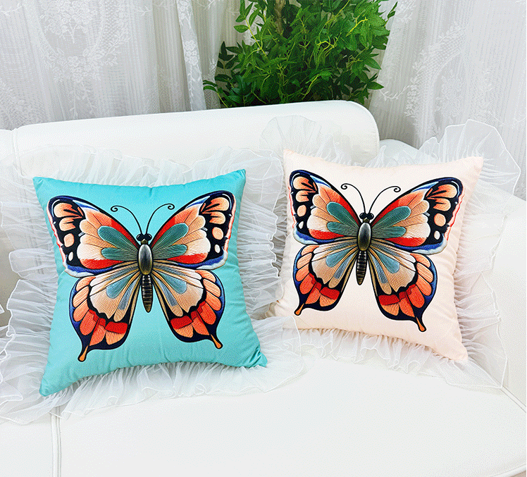 爱家居 2025新款荷兰绒双面数码印花蕾丝款蝴蝶系列抱枕 蓝蝴蝶—方枕