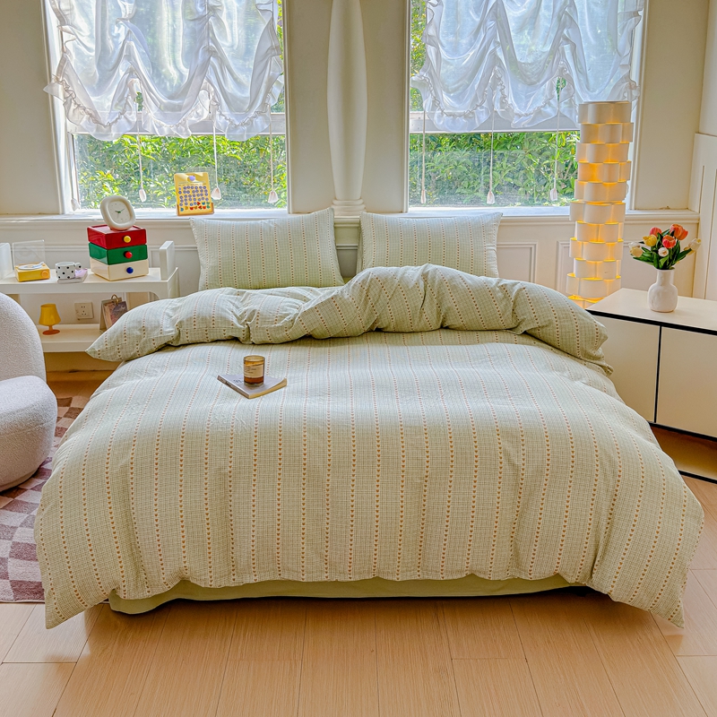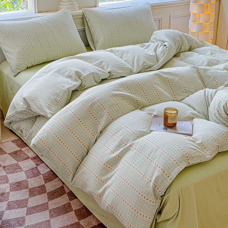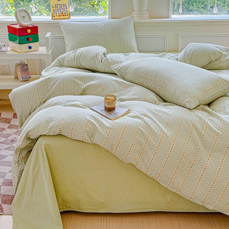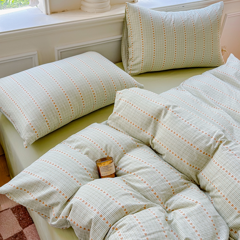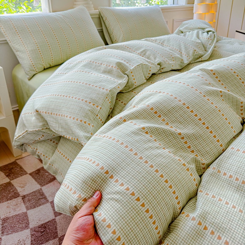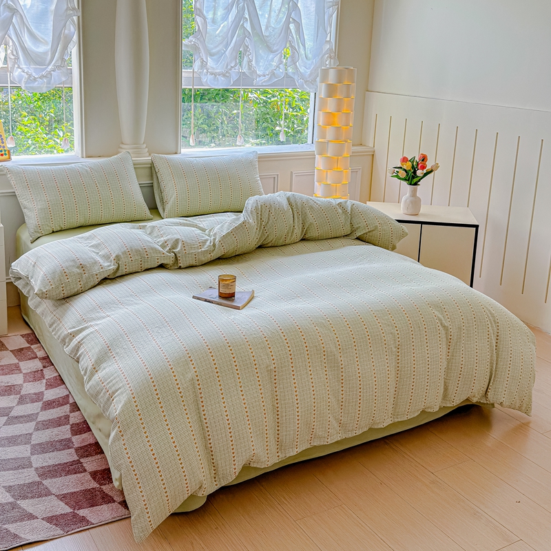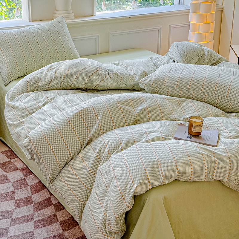 当前位置: 91家纺网 > 商品网购 > 床品套件 > 四件套 > 双层纱四件套 > 感遇家纺2025新款全棉双层纱纤柔四件套 心心相印
