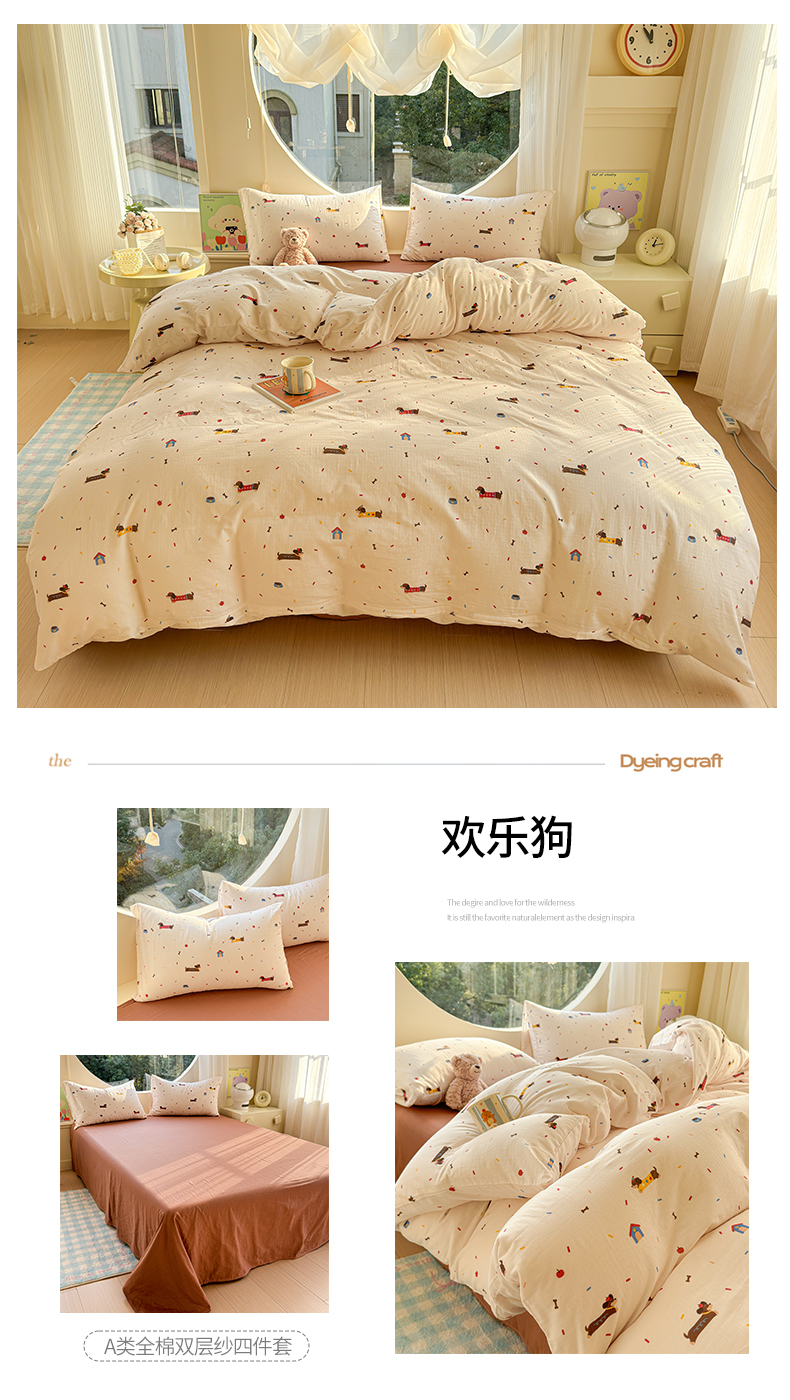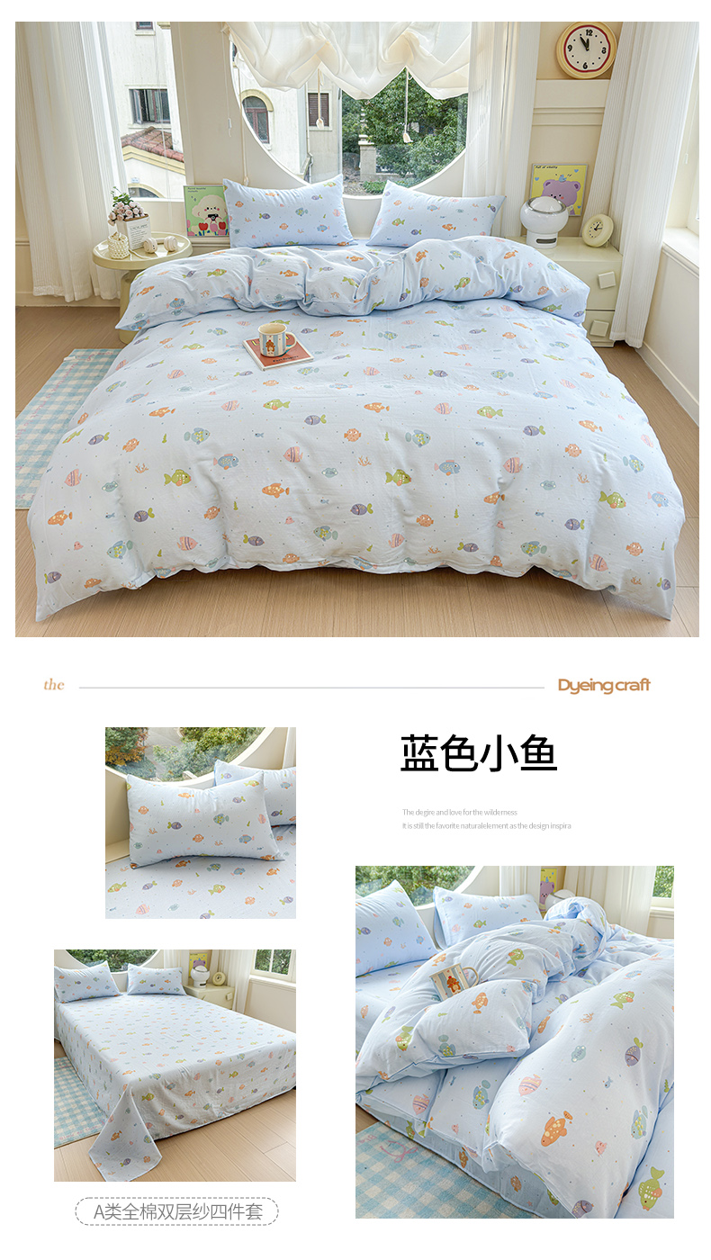 当前位置: 91家纺网 > 商品网购 > 床品套件 > 四件套 > 双层纱四件套 > 感遇家纺 2025新款全棉纯棉千柔双层纱四件套 彩虹点点