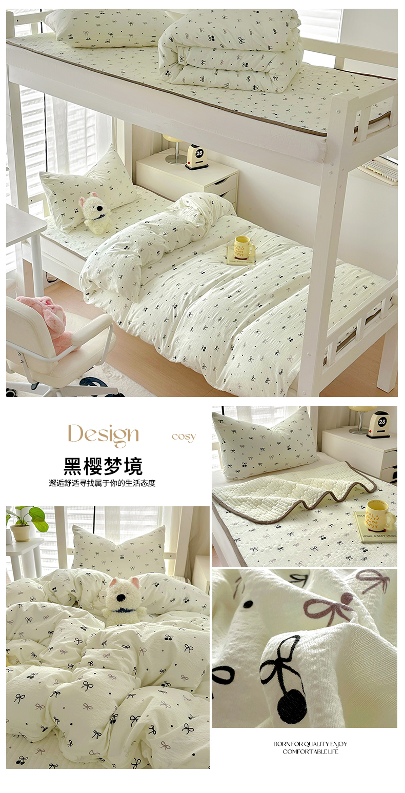 商品名称:美梦家纺2025新款木棉皱皱纱学生床盖四件套 黑櫻梦境