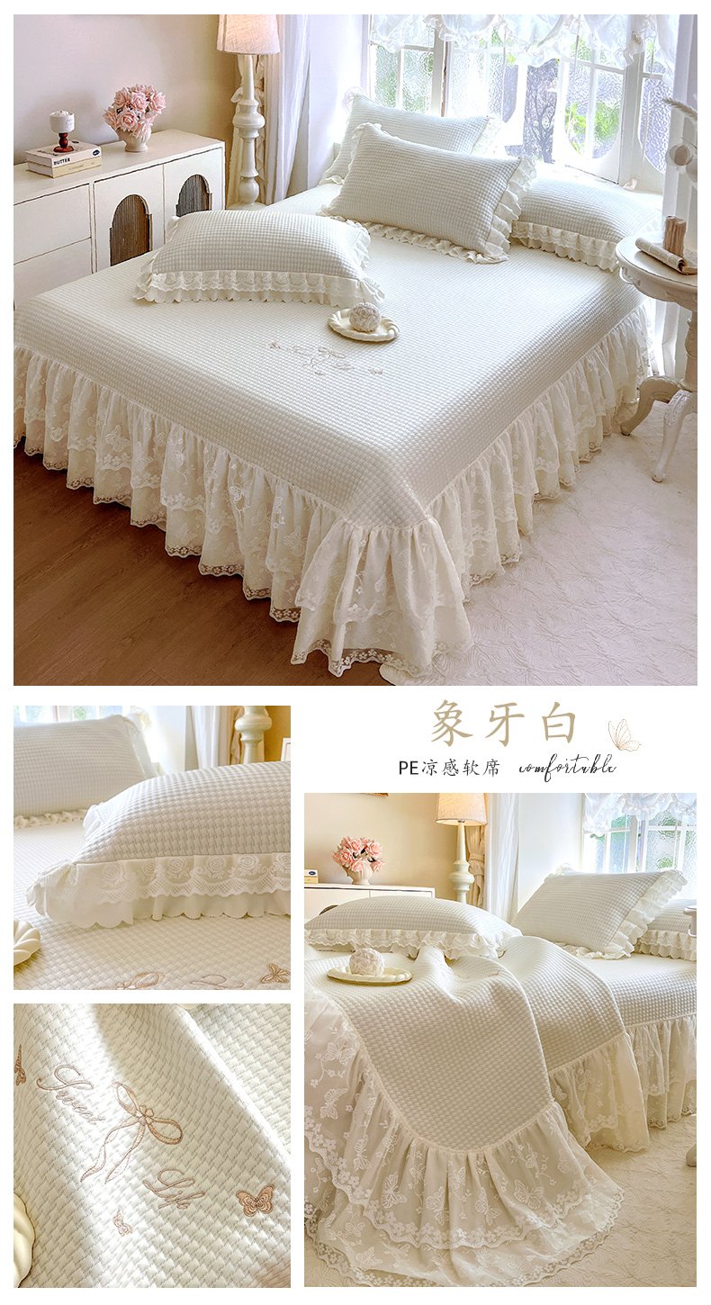 乐朵家居 加微信询价 PE凉感软凉席三件套+可配同色系空调被 -蝴蝶夫人 白