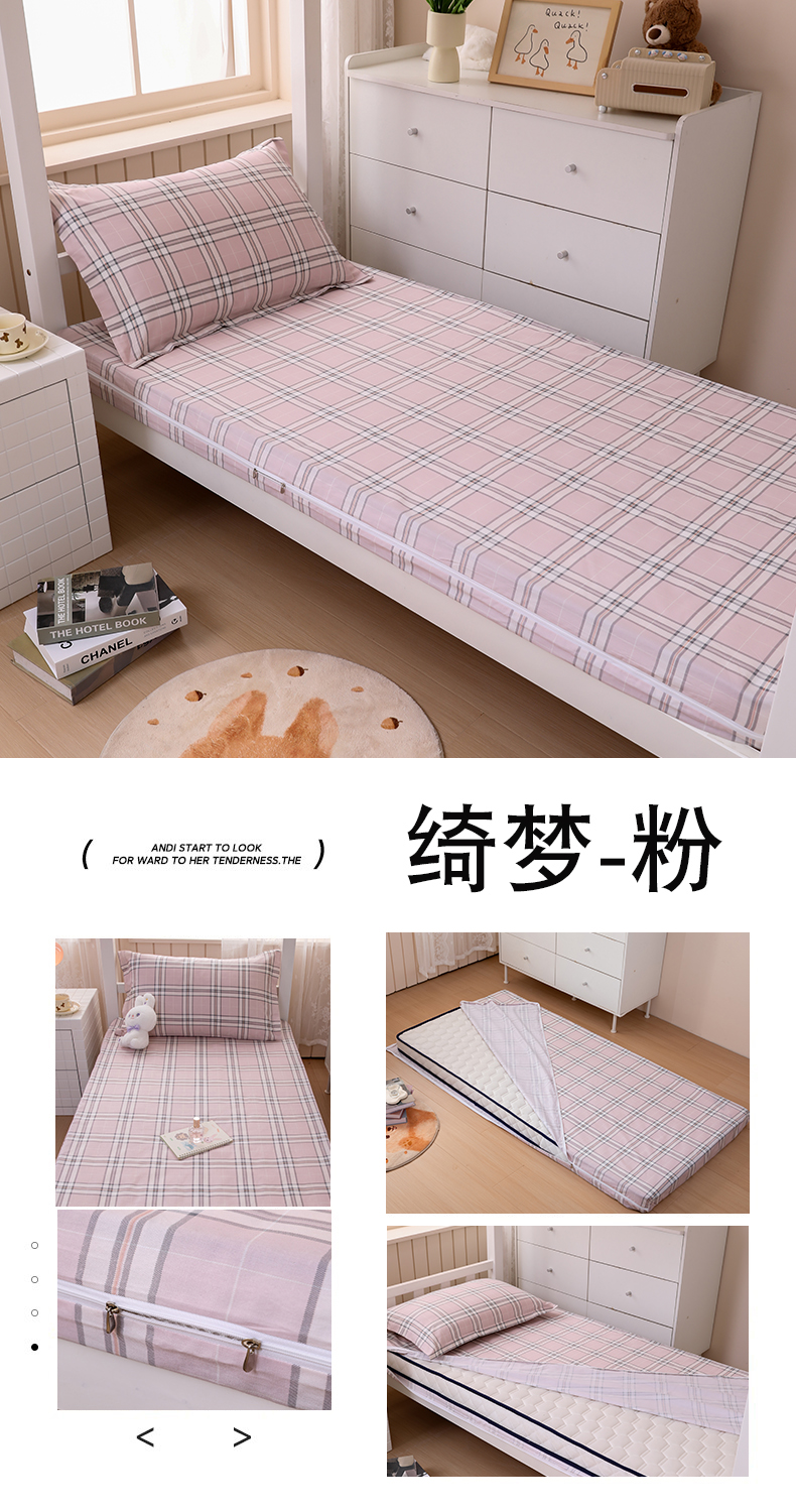 • 91家纺网 家纺一手货源 找家纺  凌云2025年新品全棉学生宿舍床垫套全包拉链式床笠单件纯棉床罩保护套 绮梦粉