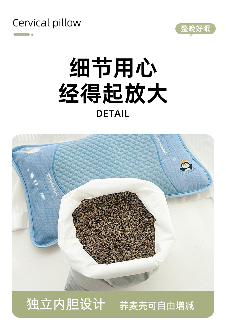 当前位置: 91家纺网 > 商品网购 > 枕头/枕芯/保健枕/颈椎枕 > 织布人 2025新款荞麦枕夏凉枕冰豆豆凉感丝枕头茶香枕儿童学生宿舍枕头枕芯 冰豆豆凉感丝-小企鹅茶香枕 33x53cm/只