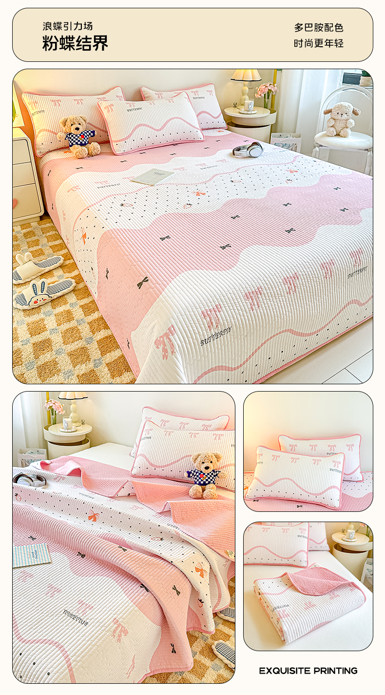 (总)橘夏家纺 2025新款热卖款韩国ins风小清新针织棉双层纱印花双面床盖,蝶恋花,小熊格子,心相印-灰色,浪漫小熊-灰色,浪漫小熊-兰色,心相印-绿色
