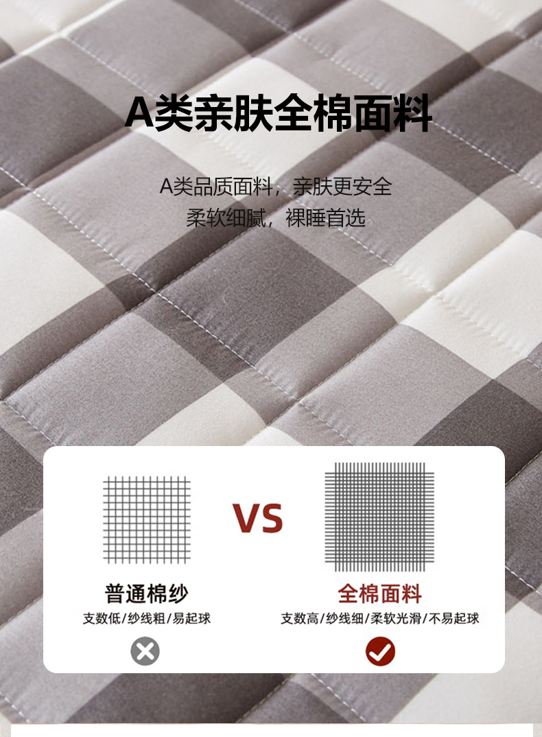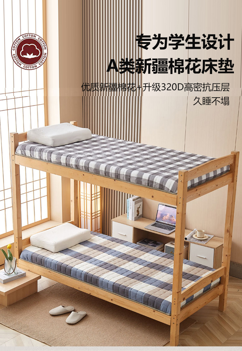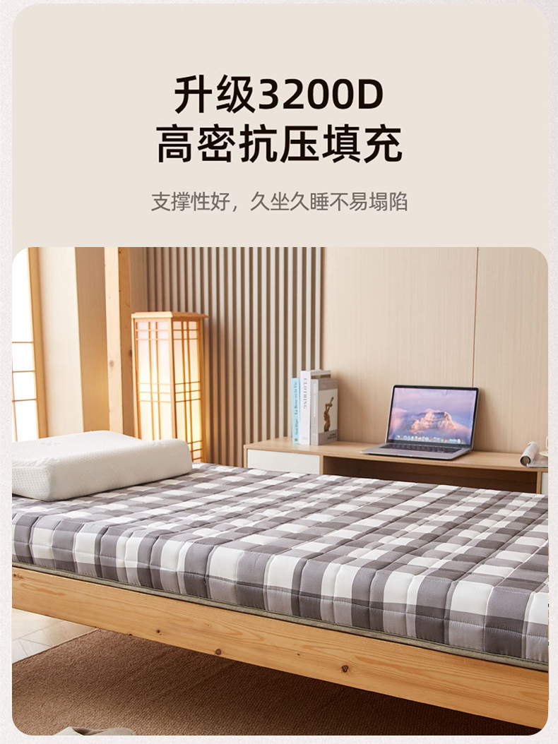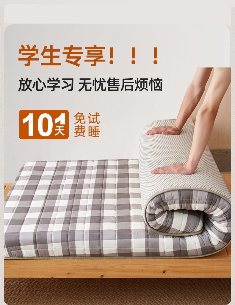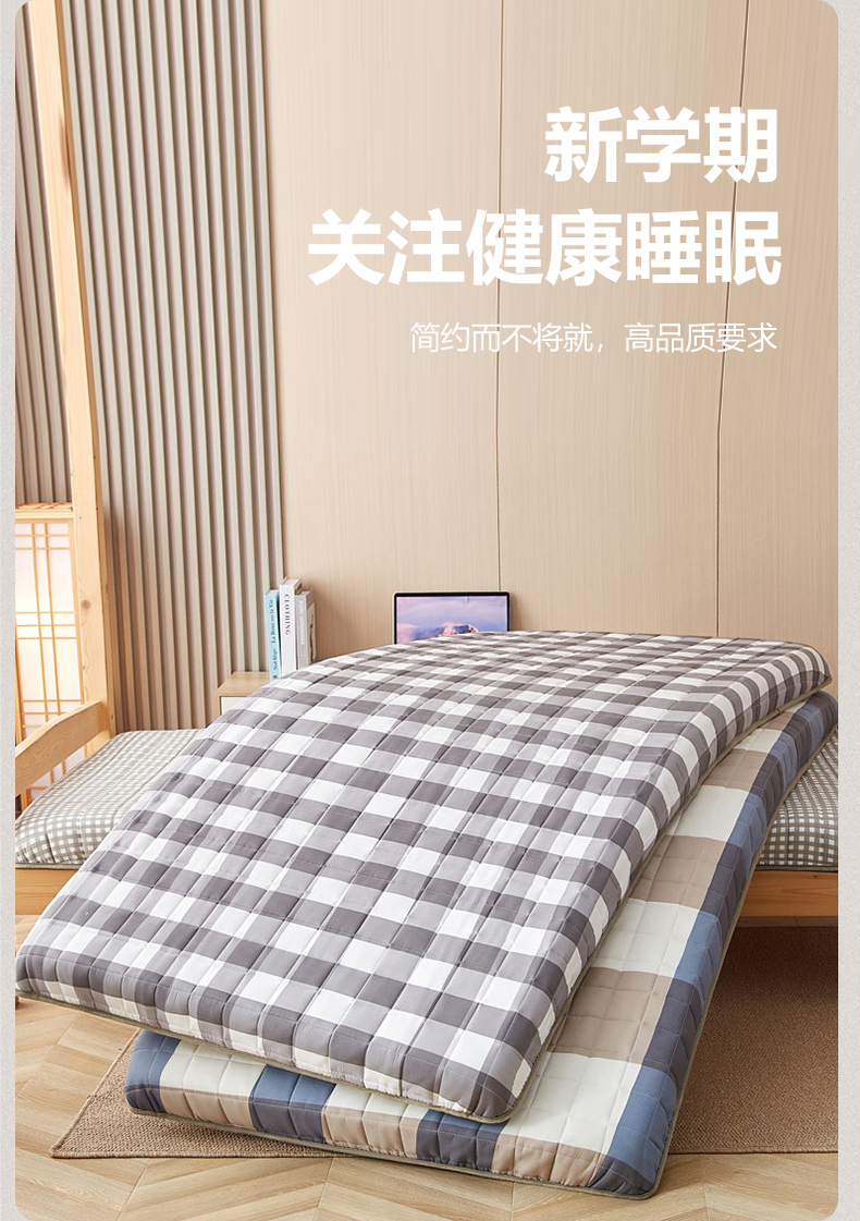 商品名称:暖季2025新款A类无印风学生款 棉花床垫 中灰格