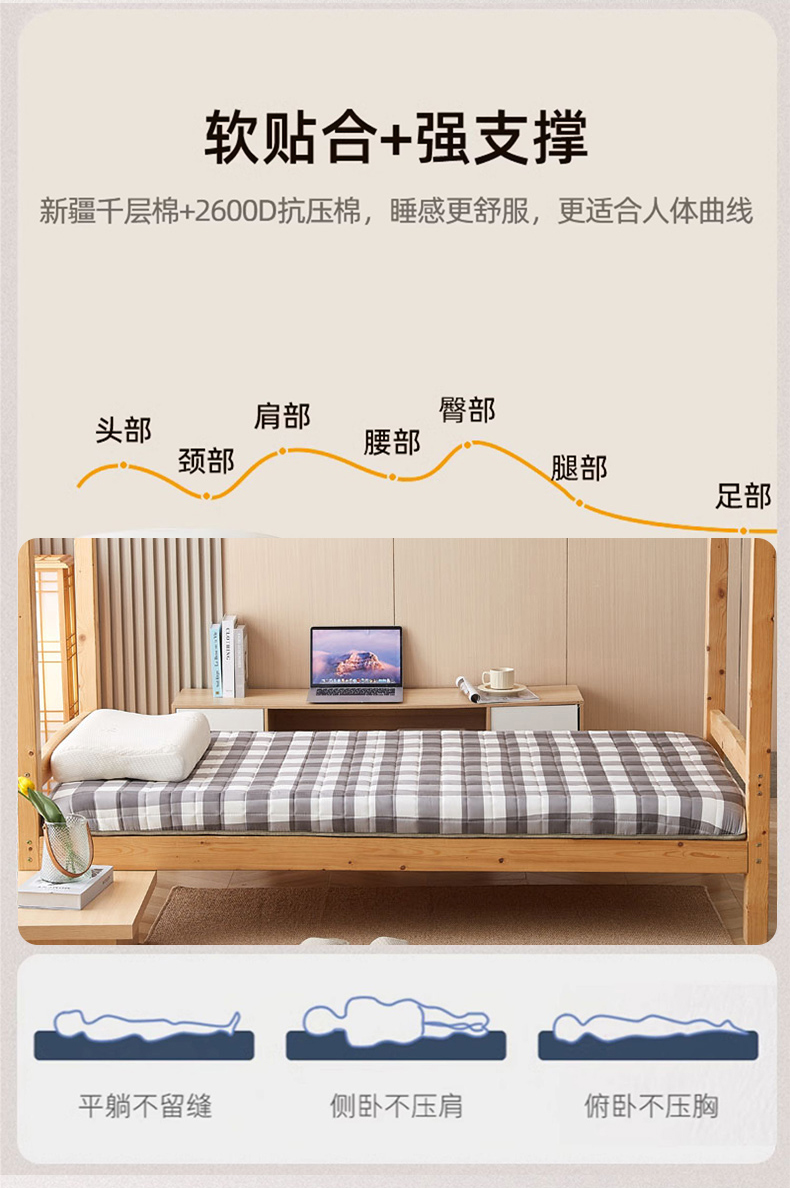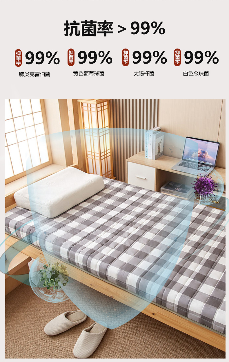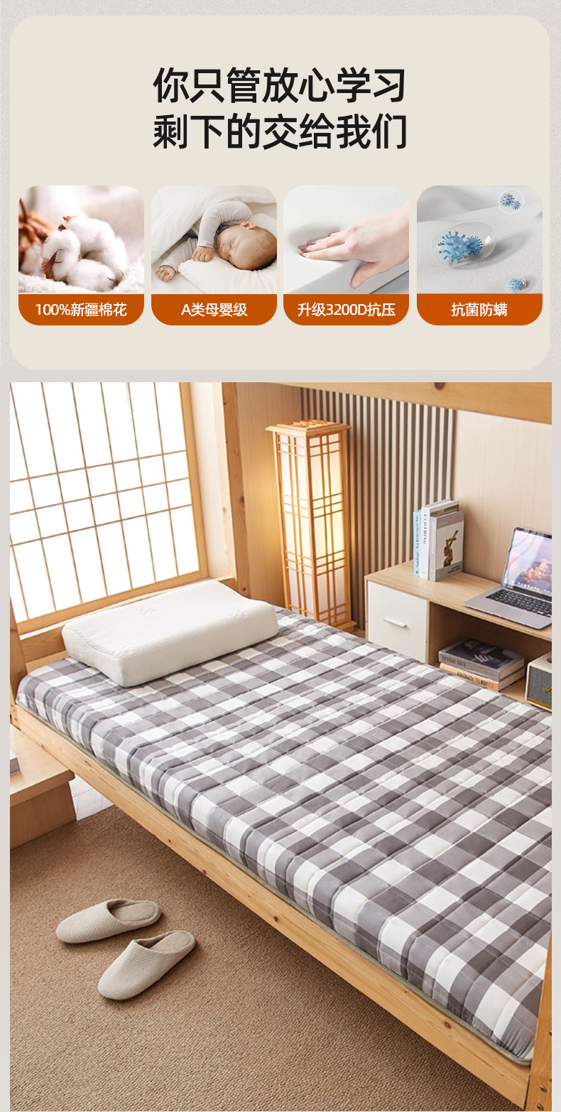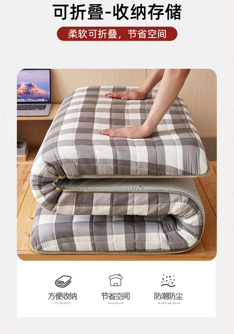 商品名称:暖季2025新款A类无印风学生款 棉花床垫 中灰格