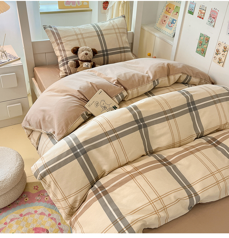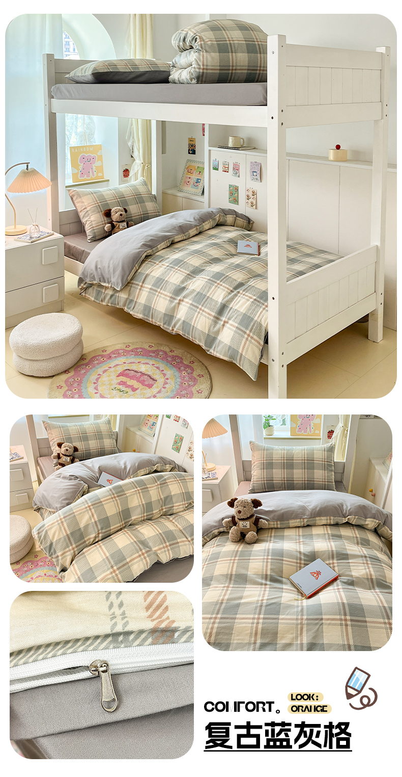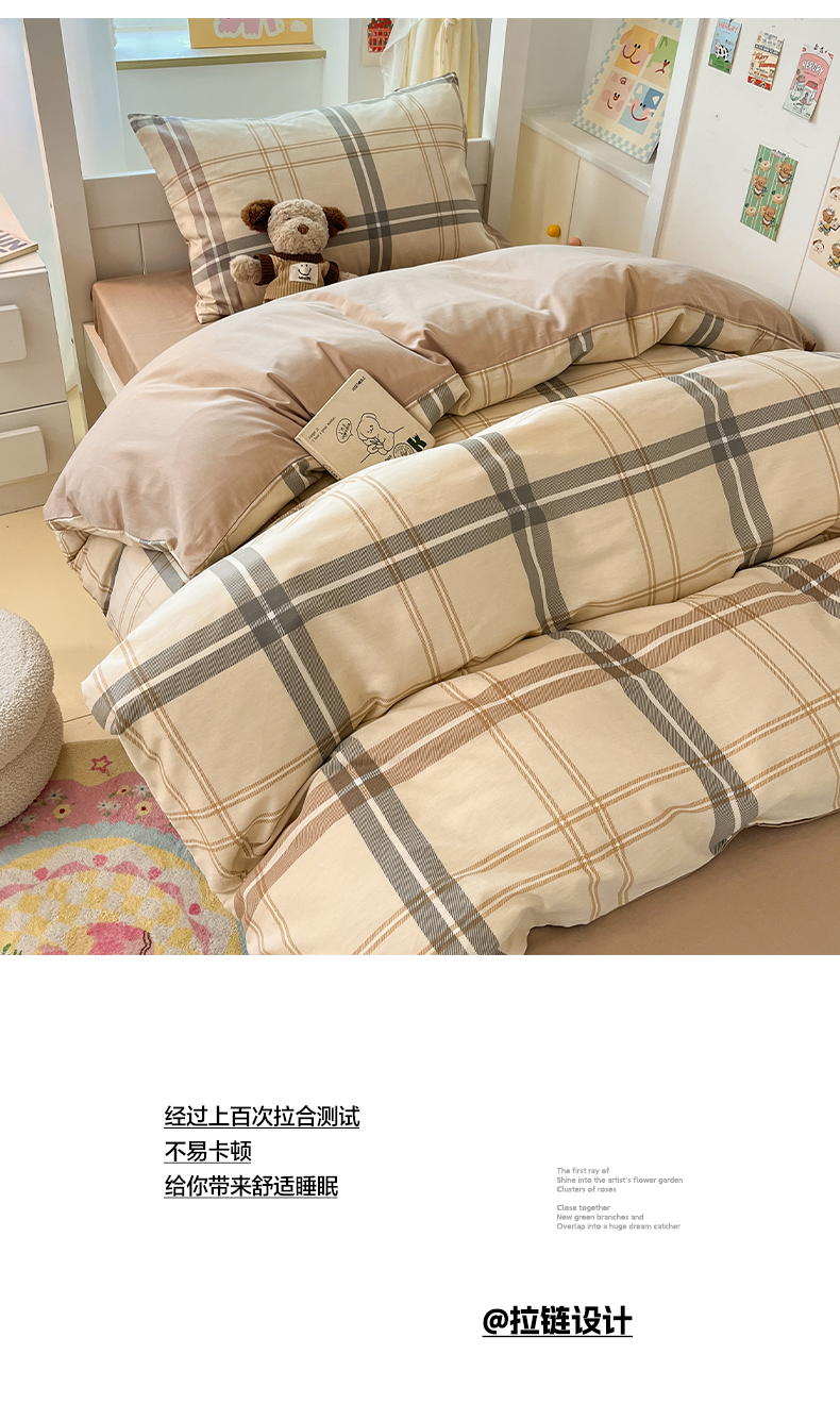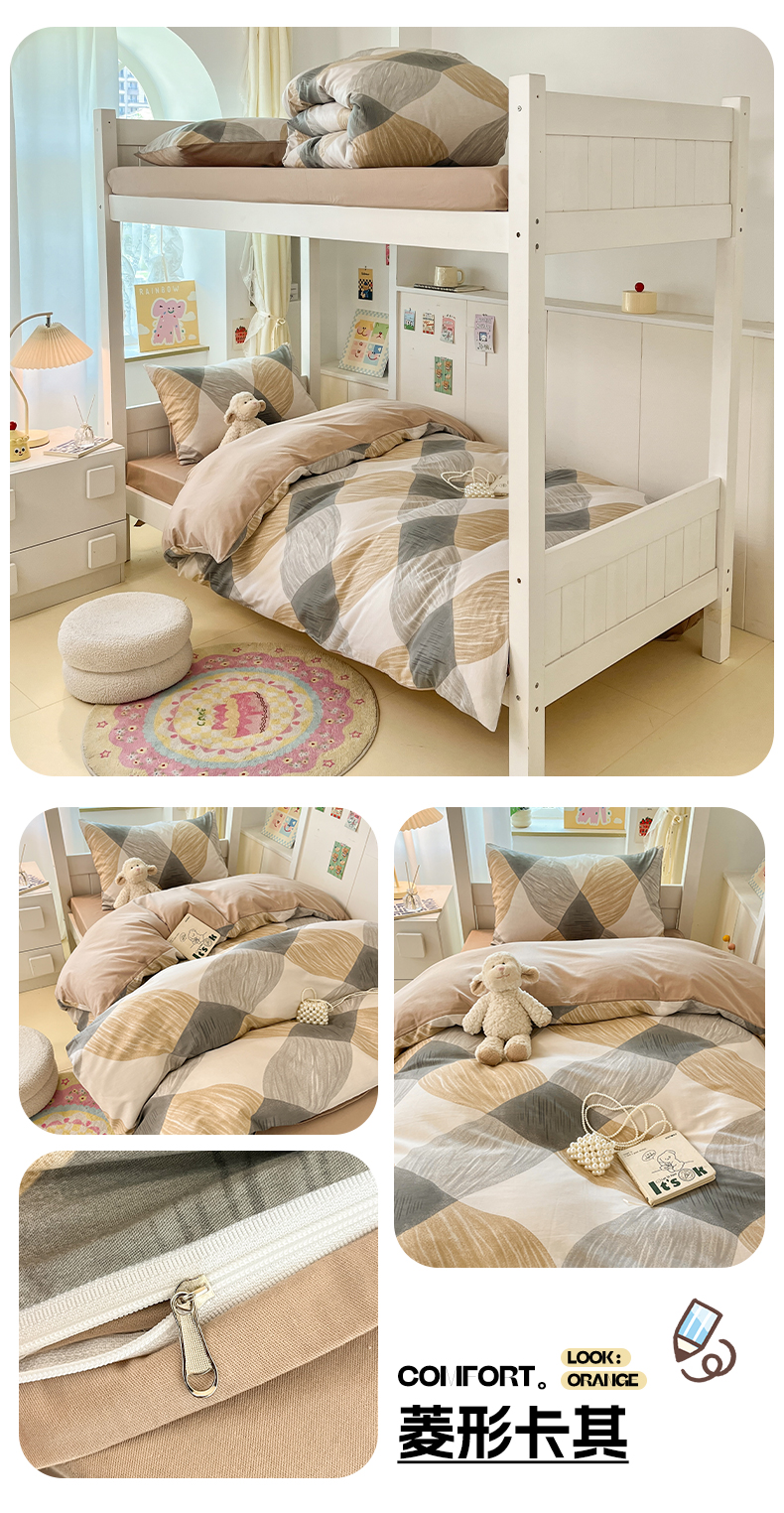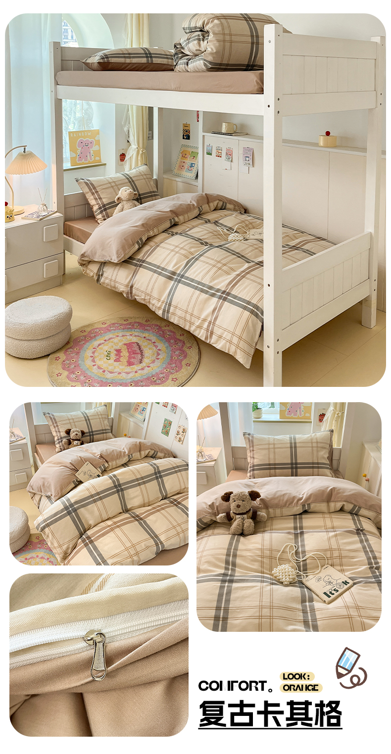 当前位置: 91家纺网 > 商品网购 > 床品套件 > 三件套 > 雅居纺家纺 2025新款全棉纯棉印花系列学生宿舍三四件套上下铺三件套 复古卡其格