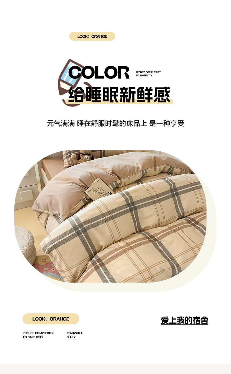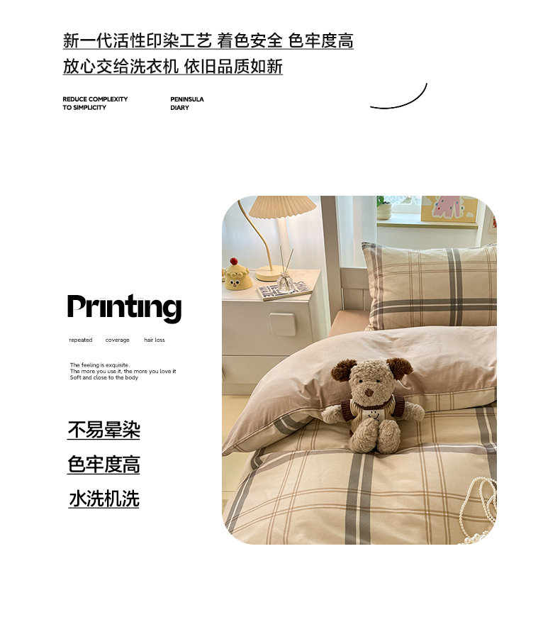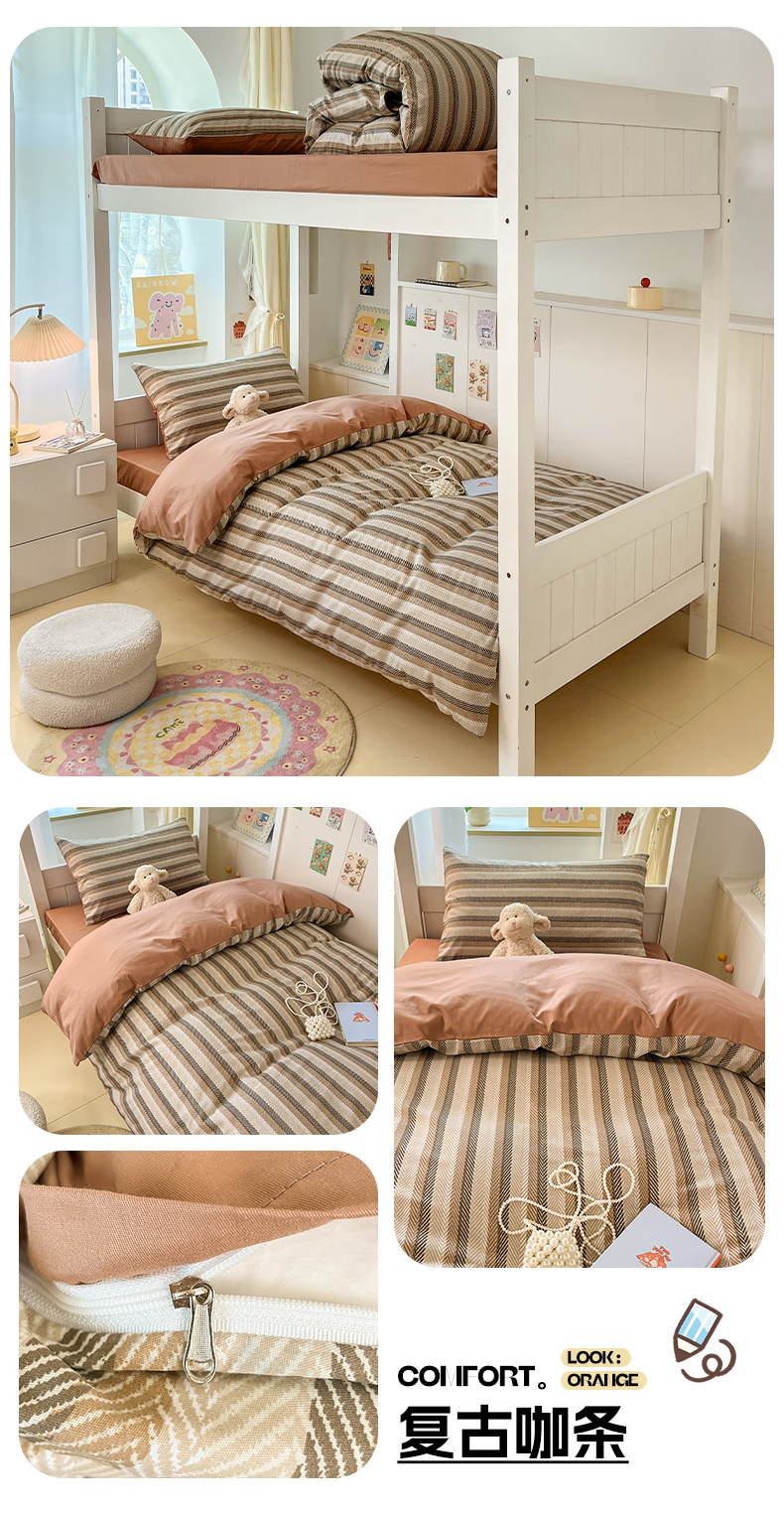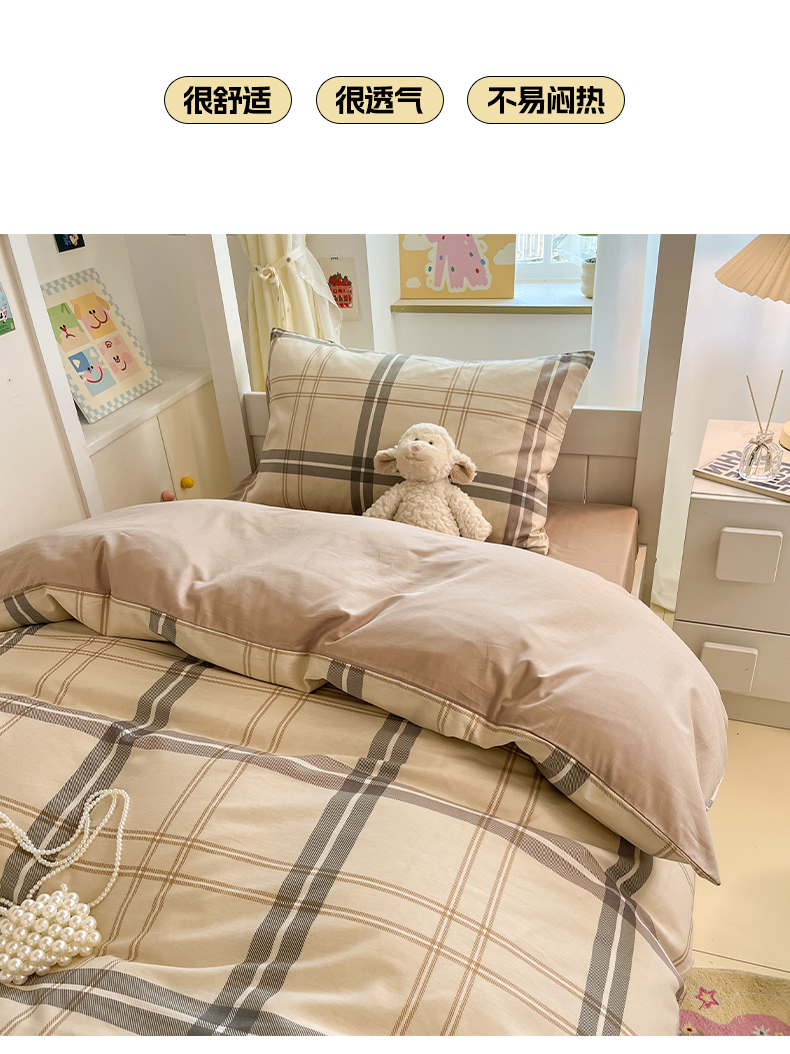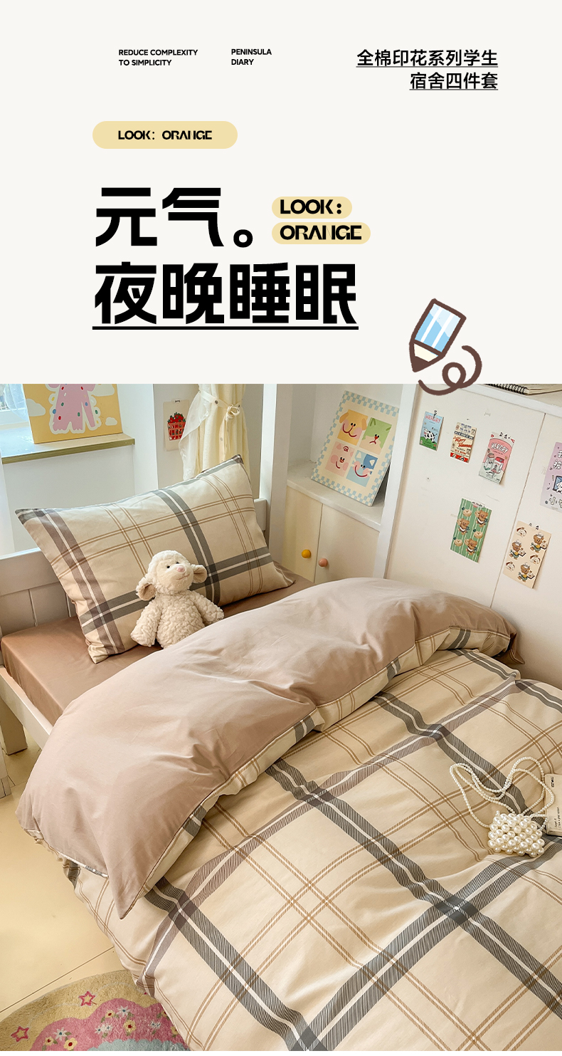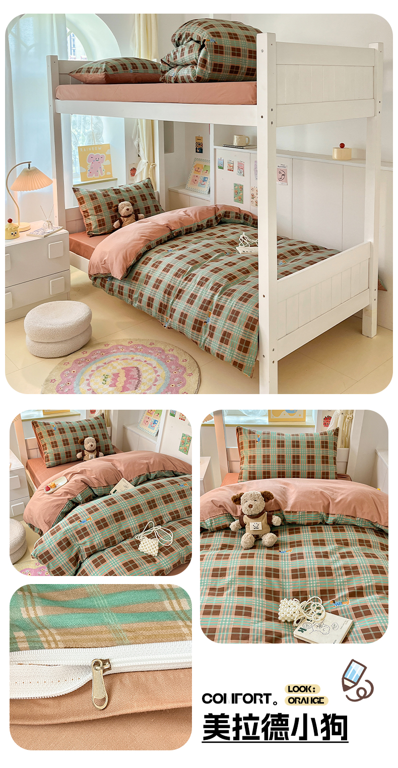 当前位置: 91家纺网 > 商品网购 > 床品套件 > 三件套 > 雅居纺家纺 2025新款全棉纯棉印花系列学生宿舍三四件套上下铺三件套 复古卡其格