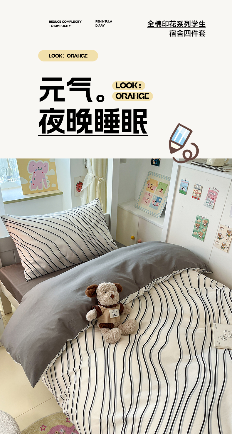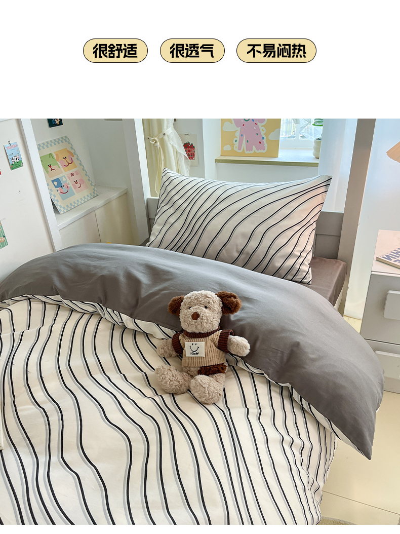 当前位置: 91家纺网 > 商品网购 > 床品套件 > 三件套 > 雅居纺家纺 2025新款全棉纯棉印花系列学生宿舍三四件套上下铺三件套 斜纹波条