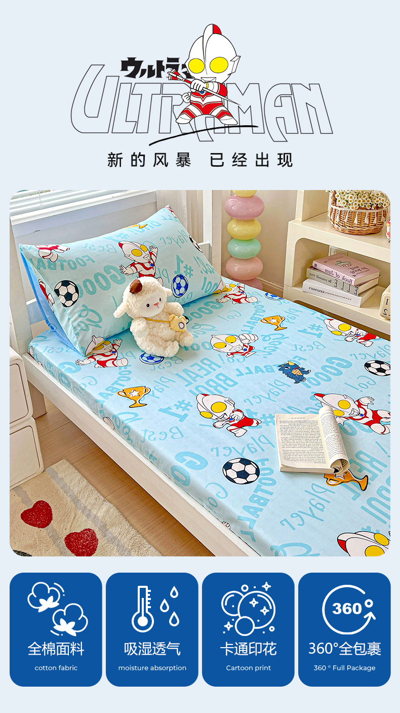 名兮家居 2025-奥特曼-三丽鸥全棉13372学生床上下铺床笠【含防伪标】 世界杯