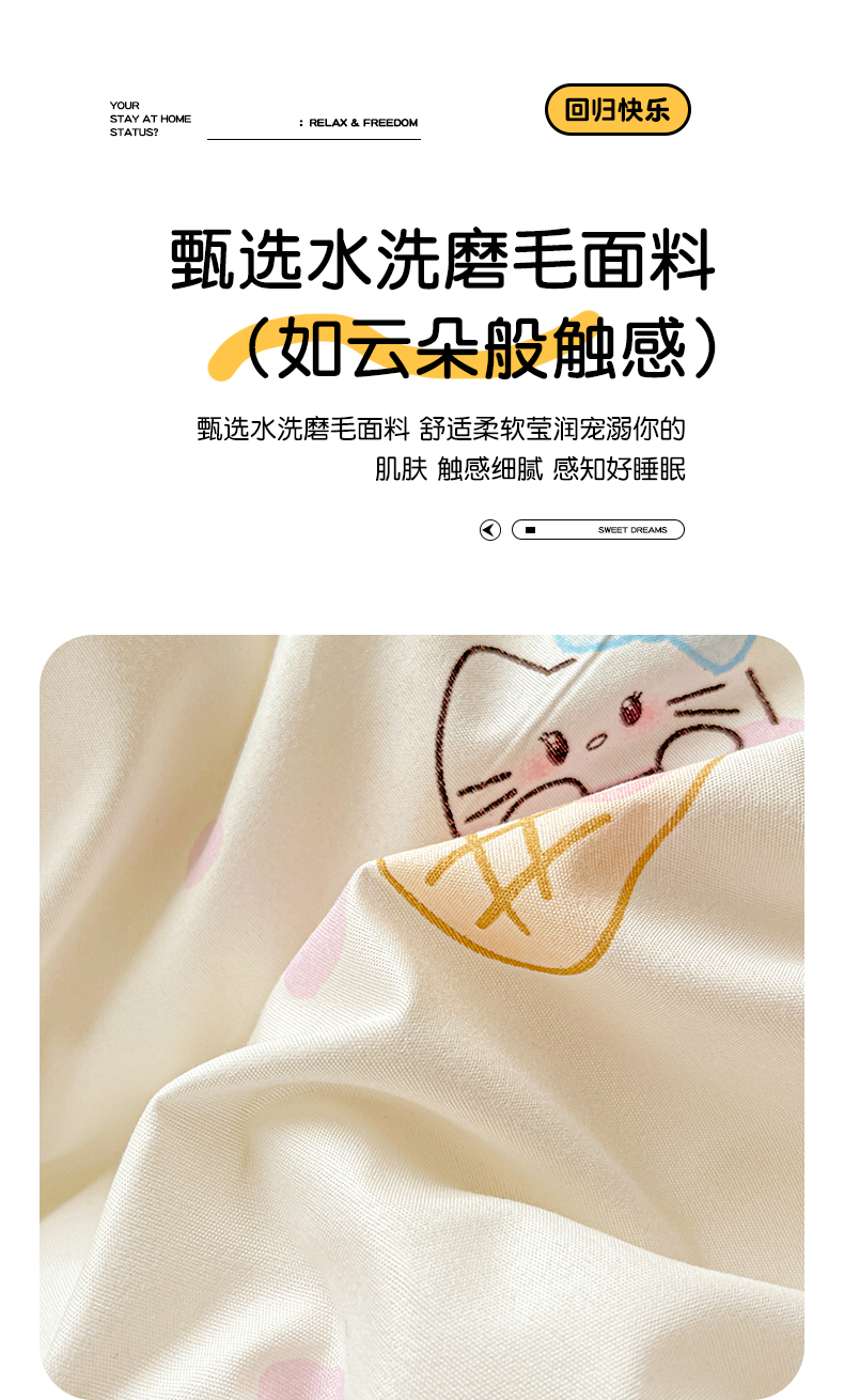 当前位置: 91家纺网 > 商品网购 > 床品套件 > 四件套 > 普通磨毛四件套 > 布可家纺 2025新款水洗磨毛时尚印花四件套 甜心KT