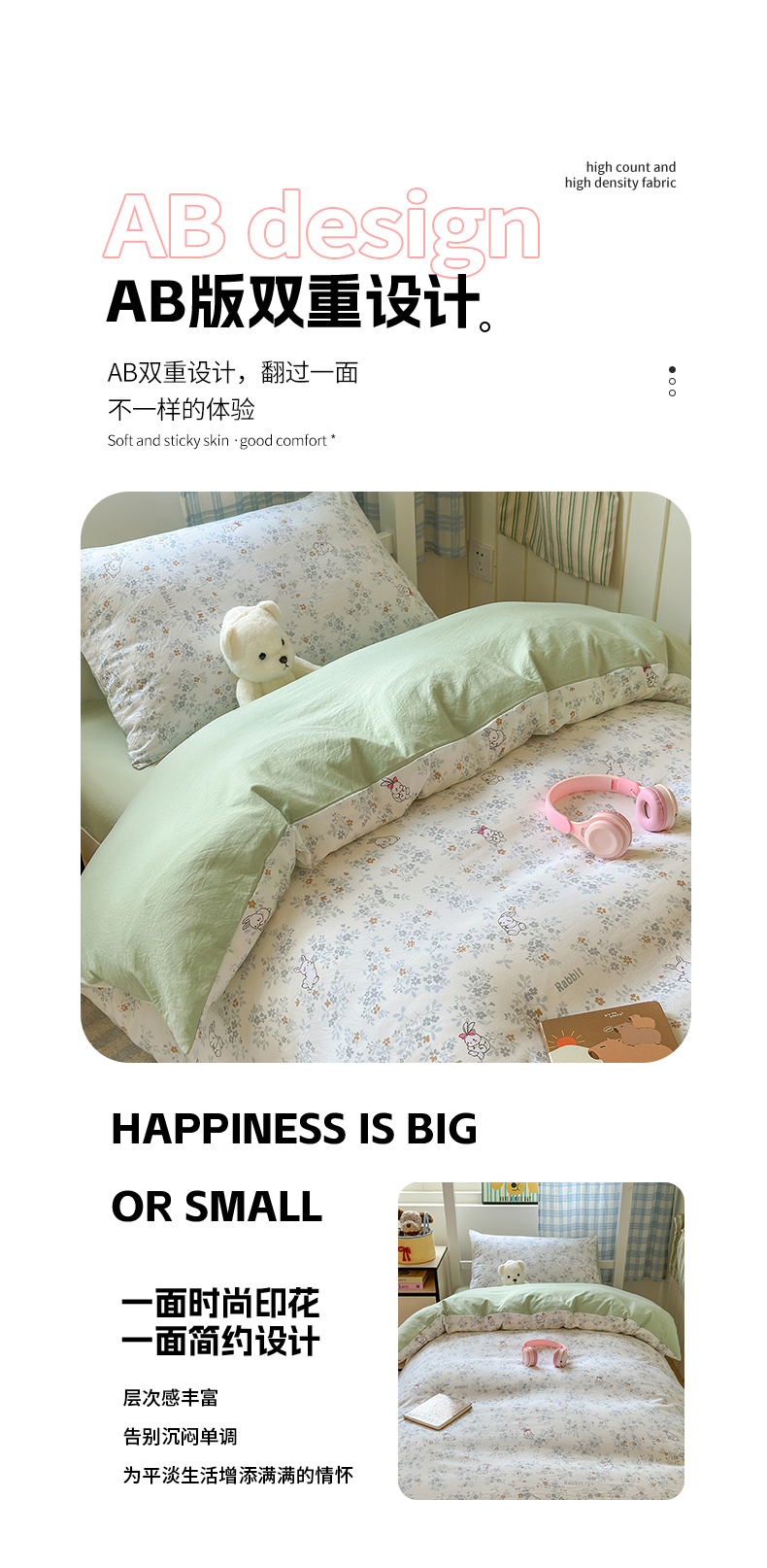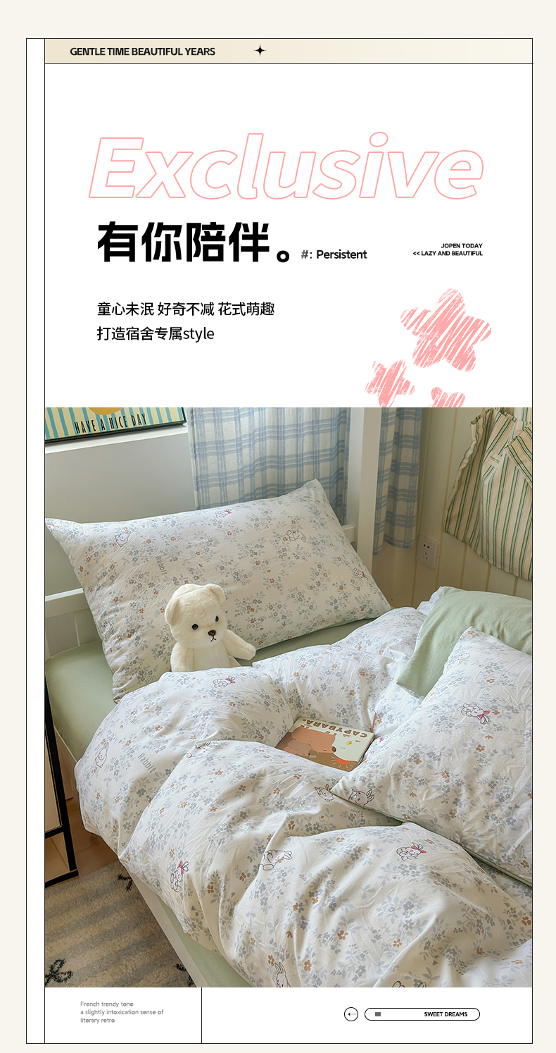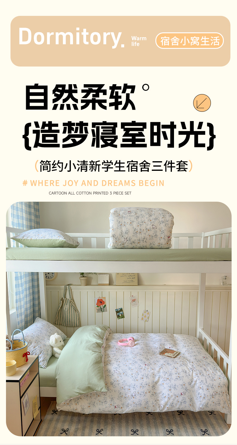 当前位置: 91家纺网 > 商品网购 > 床品套件 > 三件套 > 沐芷 2025 开学季学生宿舍三件套 水洗棉四件套被套床单 繁花兔兔