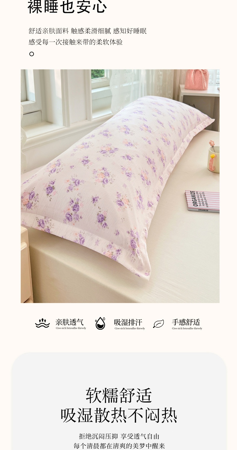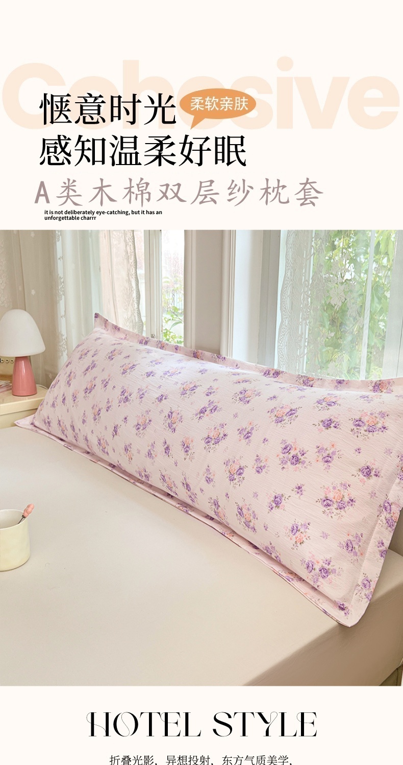 商品名称:梦舒羽 2025新款云感双层纱印花双人枕套情侣1.5m枕芯套1.8床枕头 紫薇花园