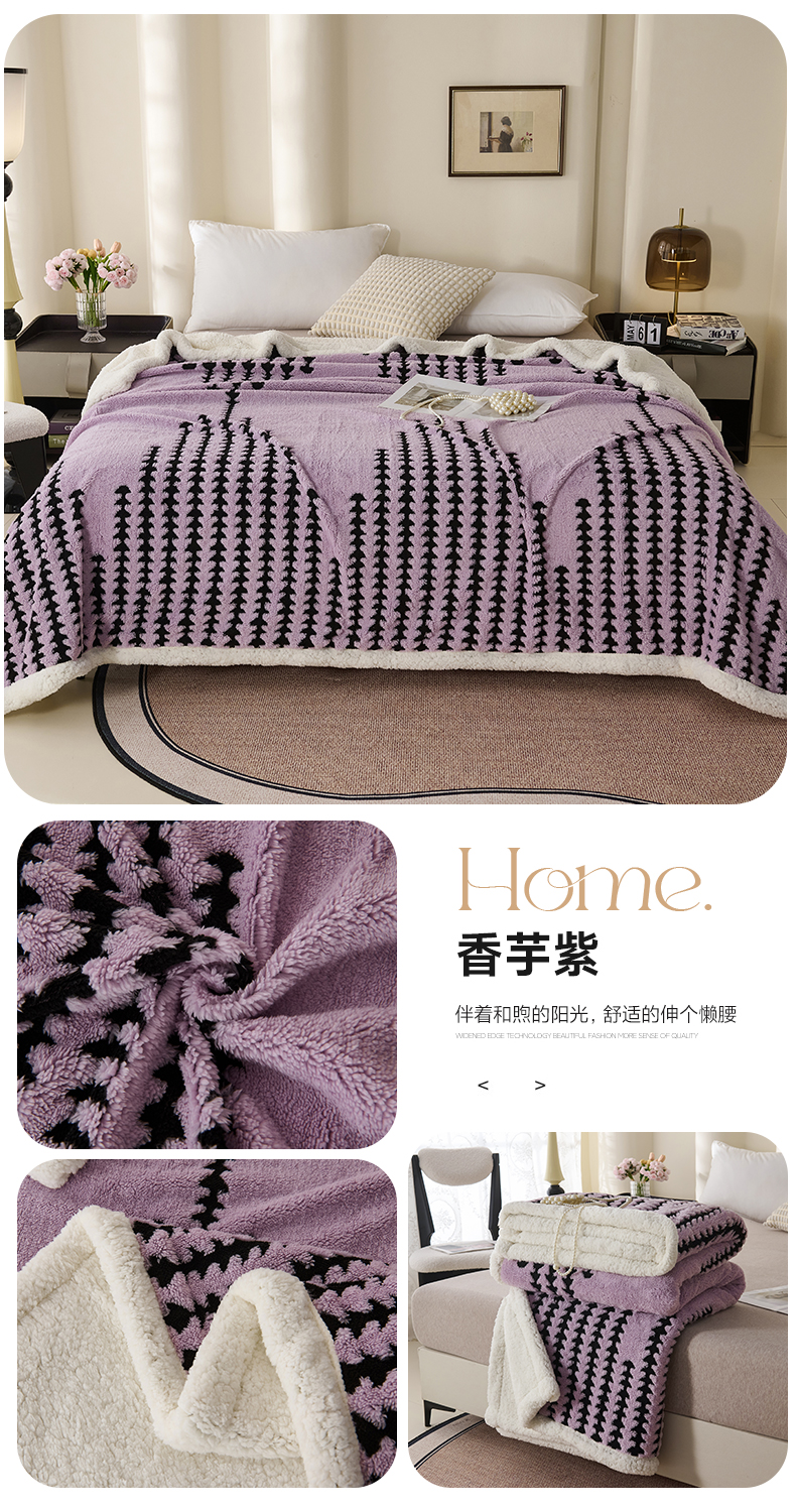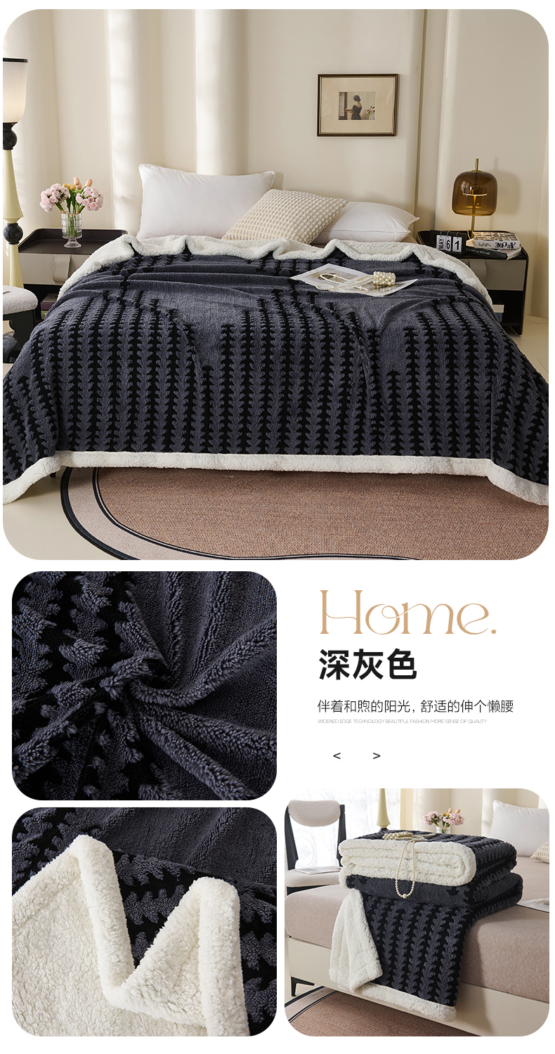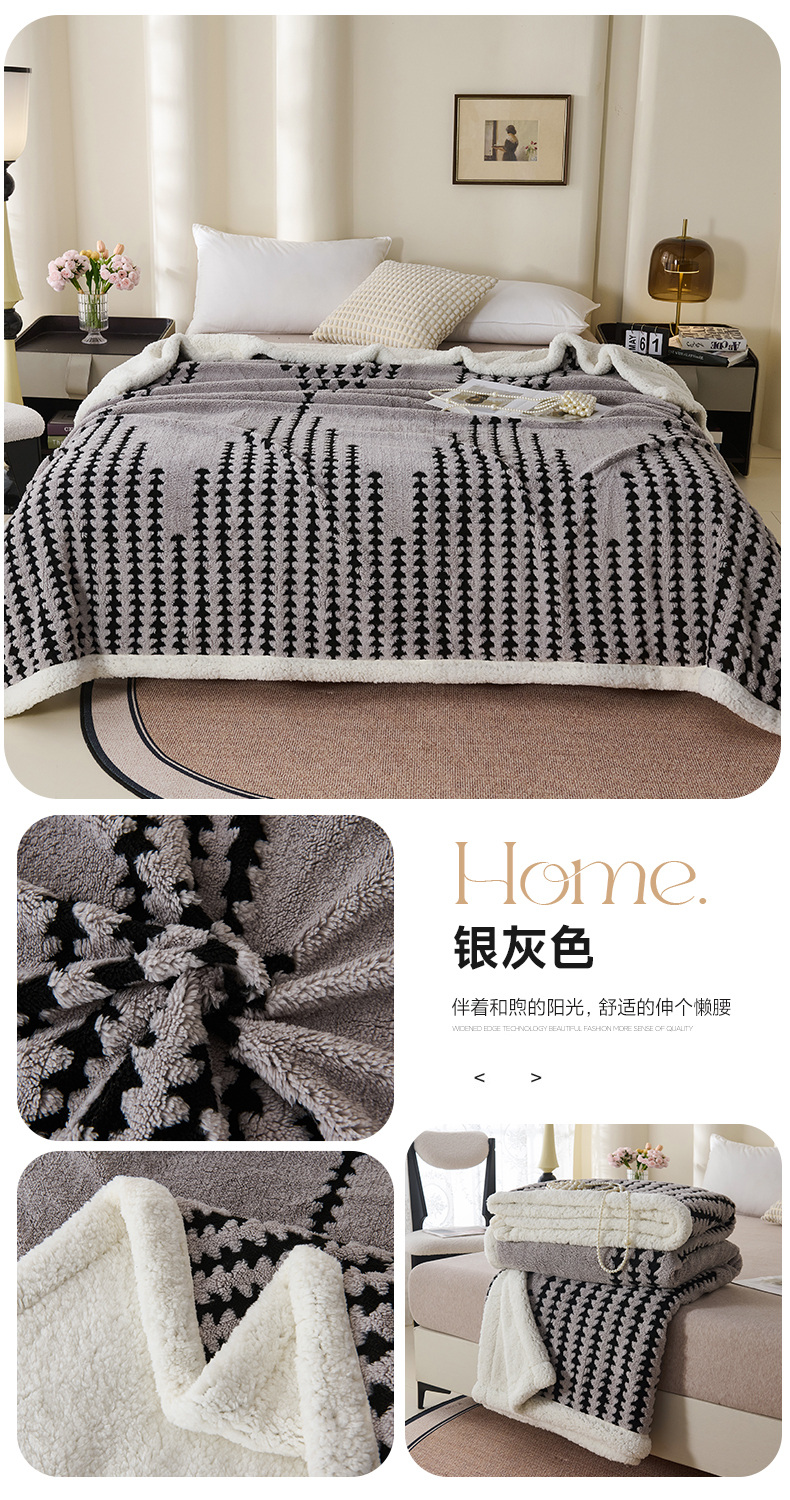 (总)馨米莱家纺2025新款提花兔毛复合毯,高级灰,米白色,深灰色,驼褐色,香芋紫,樱花粉