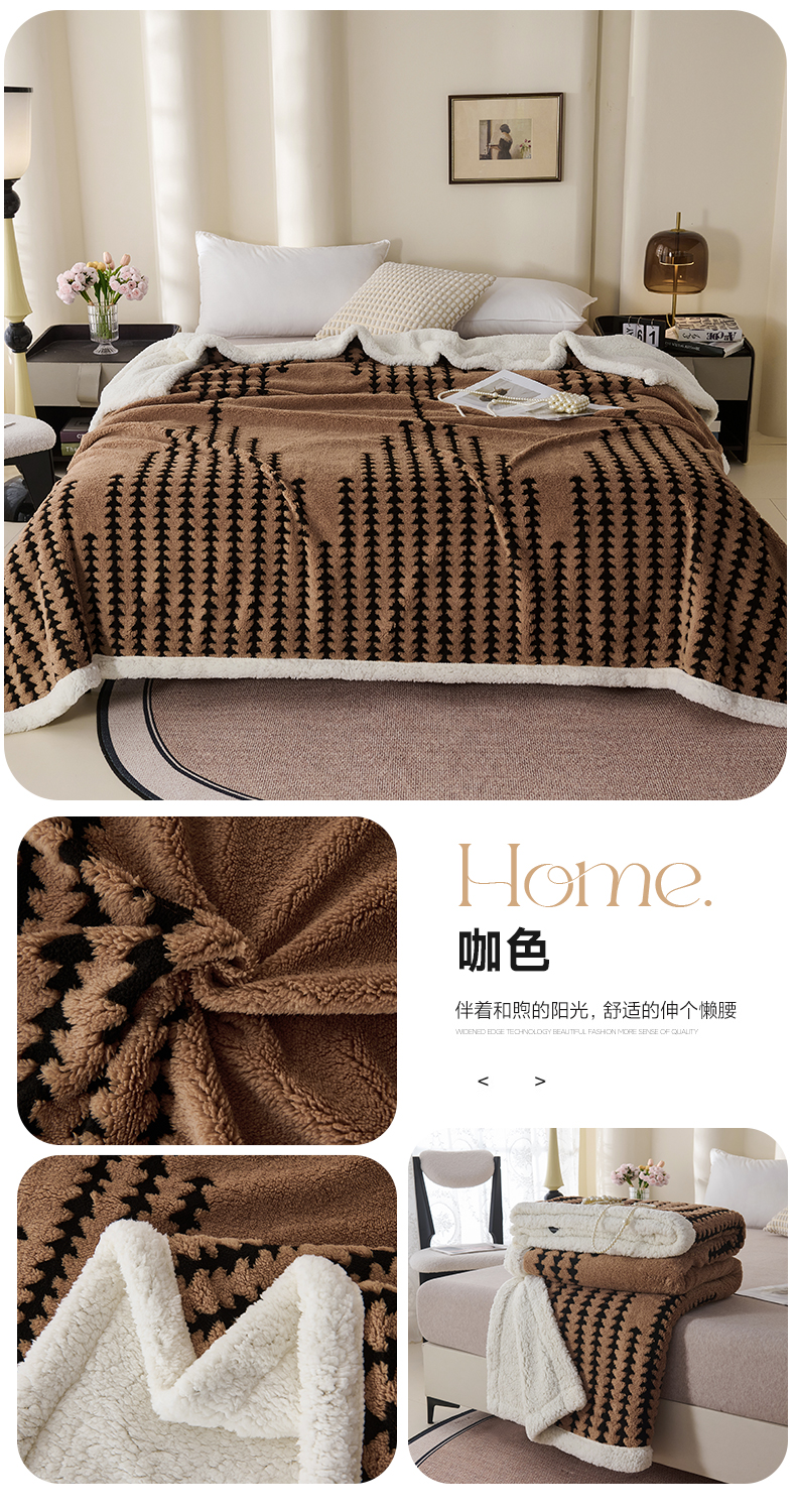 (总)馨米莱家纺 2025新款AB版牛奶绒提花纯色多功能盖毯毛毯,兰色,裸粉色,米灰色,米咖,浅驼,深咖,嫣红色