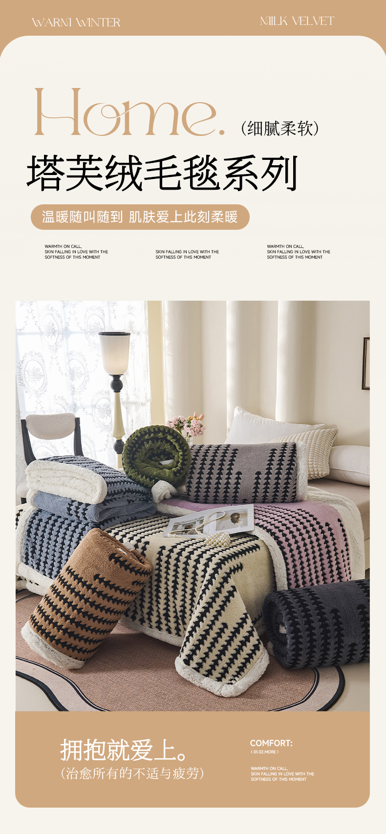 (总)馨米莱家纺 2024新款塔芙蓉多功能盖毯,灰色,芥绿,咖色,米色,深灰,雾蓝,玉粉,紫色