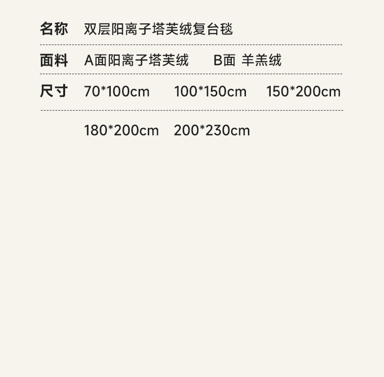 商品名称:(总)馨米莱家纺 2025新款双层阳离子塔芙绒复台毯