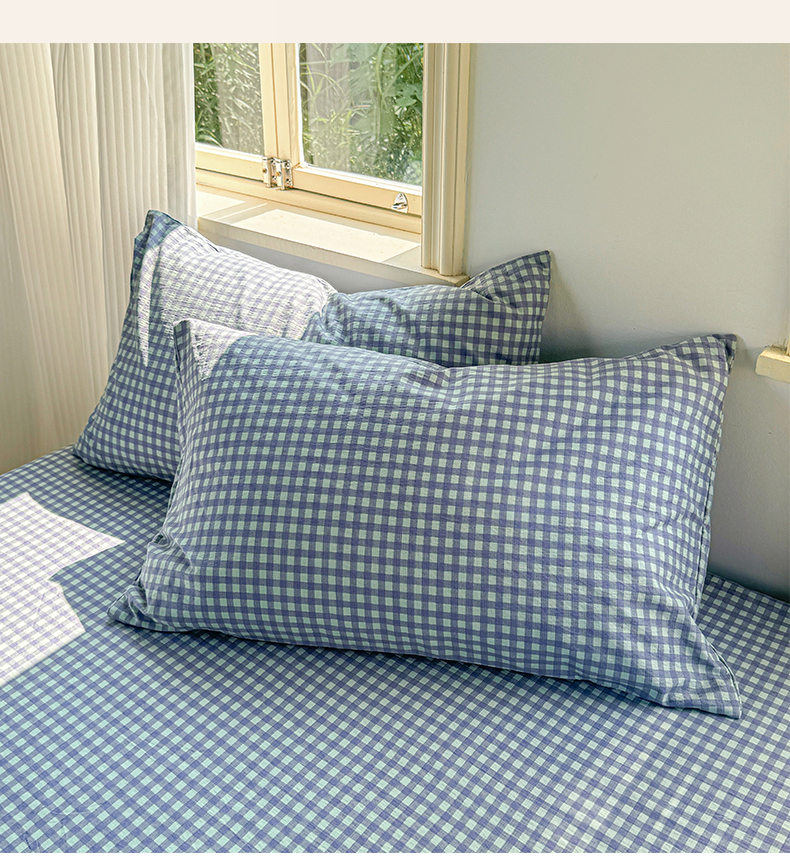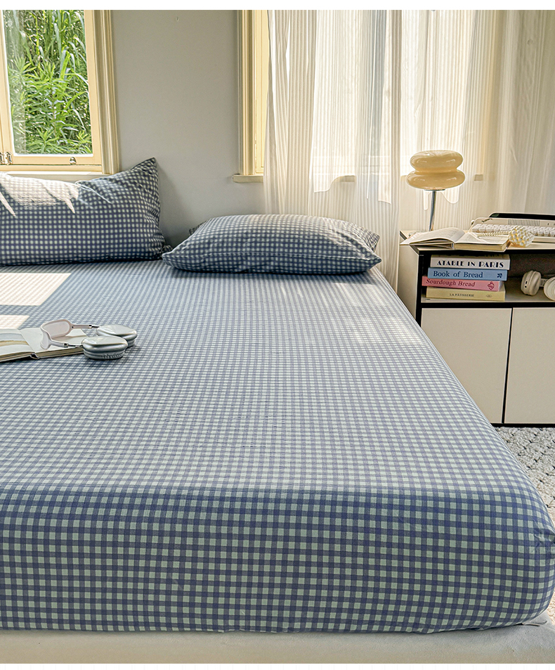 多品家纺 2025新款超柔云感双层纱水洗棉单品床笠 绿格