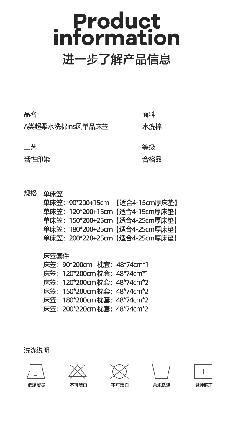单床笠150*200+25cm【适合4-25cm厚床垫】