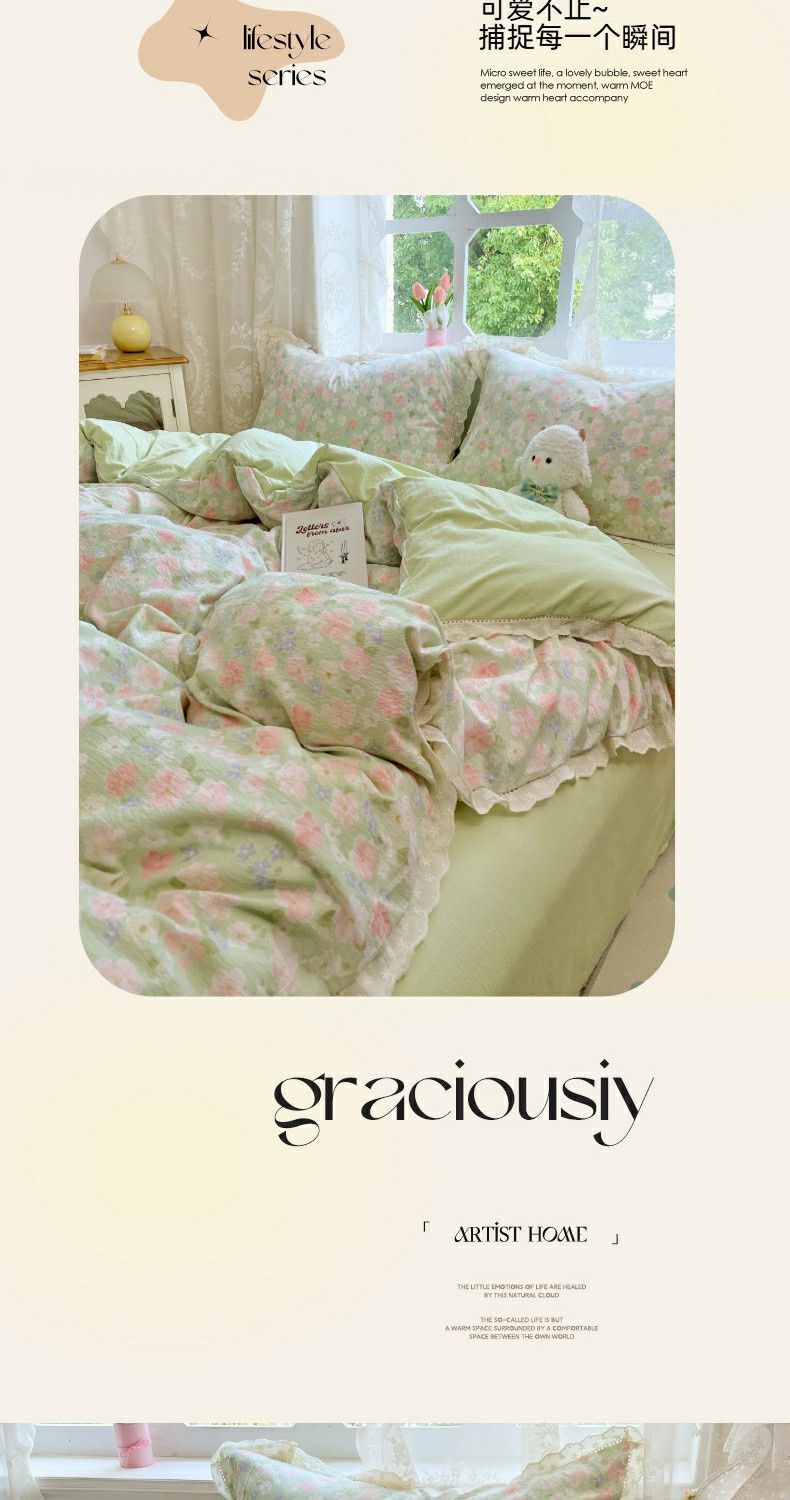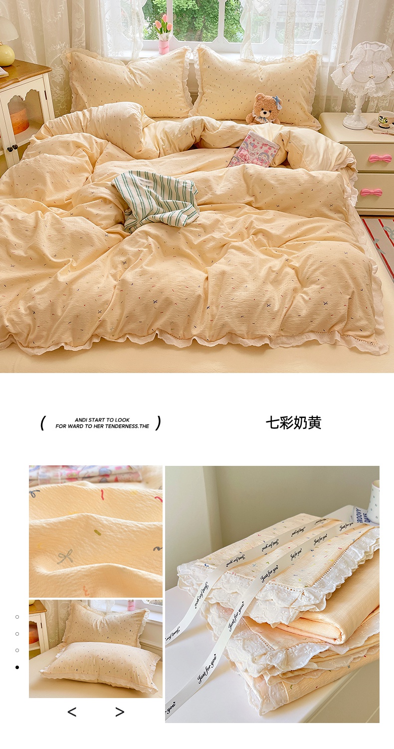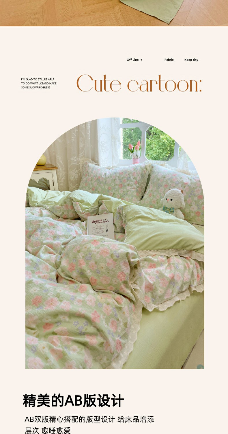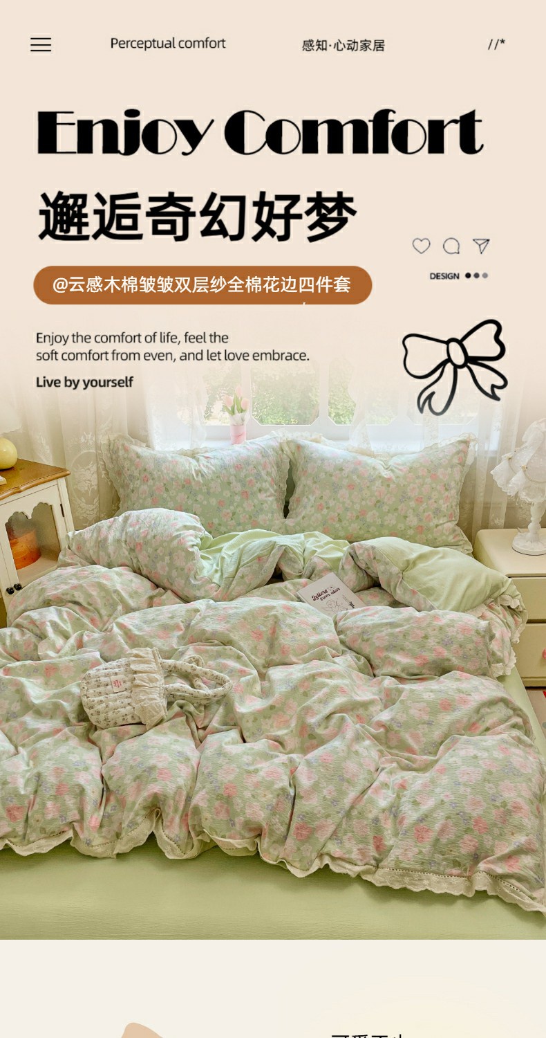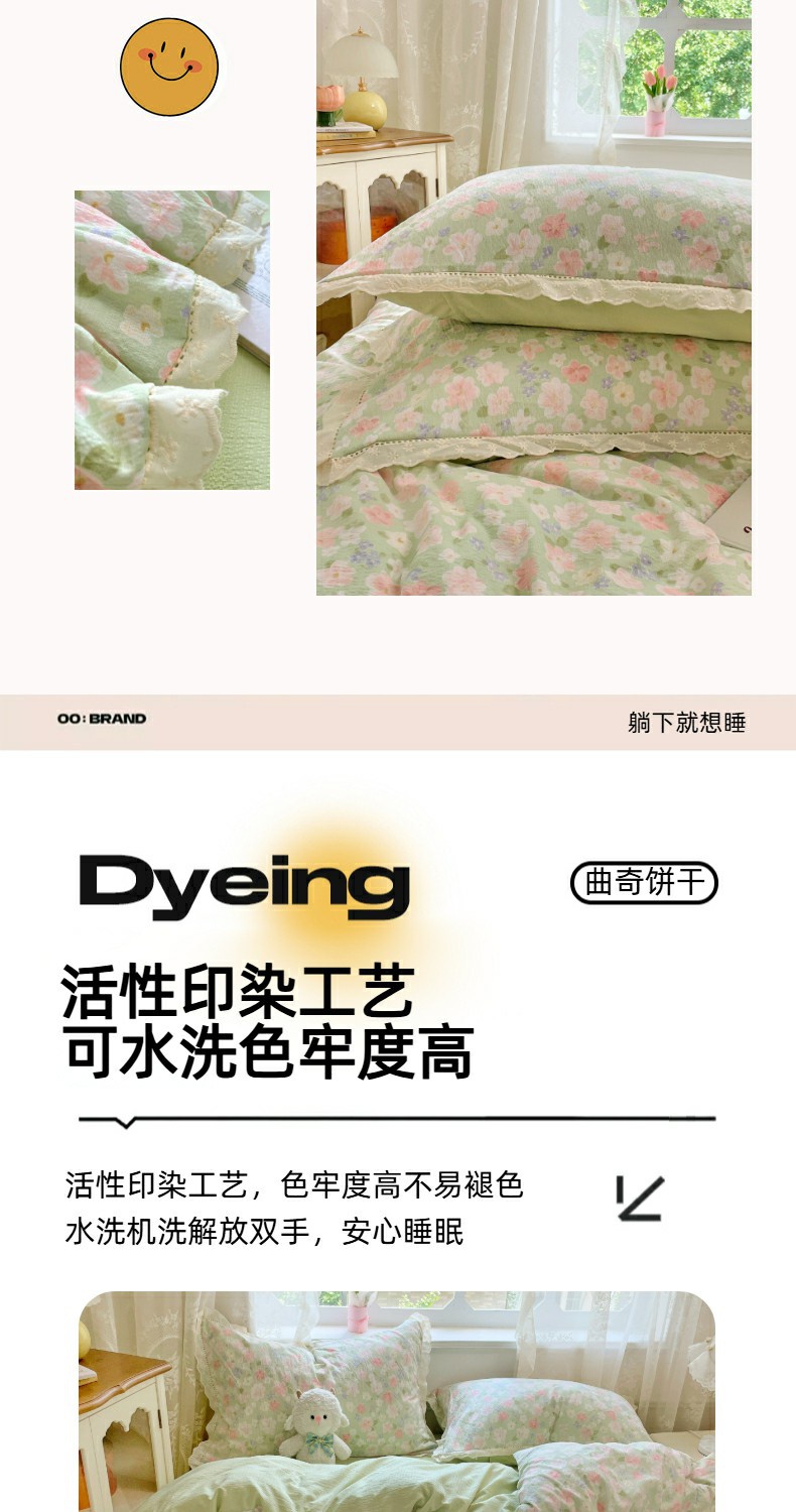 当前位置: 91家纺网 > 商品网购 > 床品套件 > 四件套 > 全棉普通四件套 > 优佳优品 2025新款A类云感木棉皱皱双层纱全棉镂空花边四件套(提供买家秀) 薄荷之夏