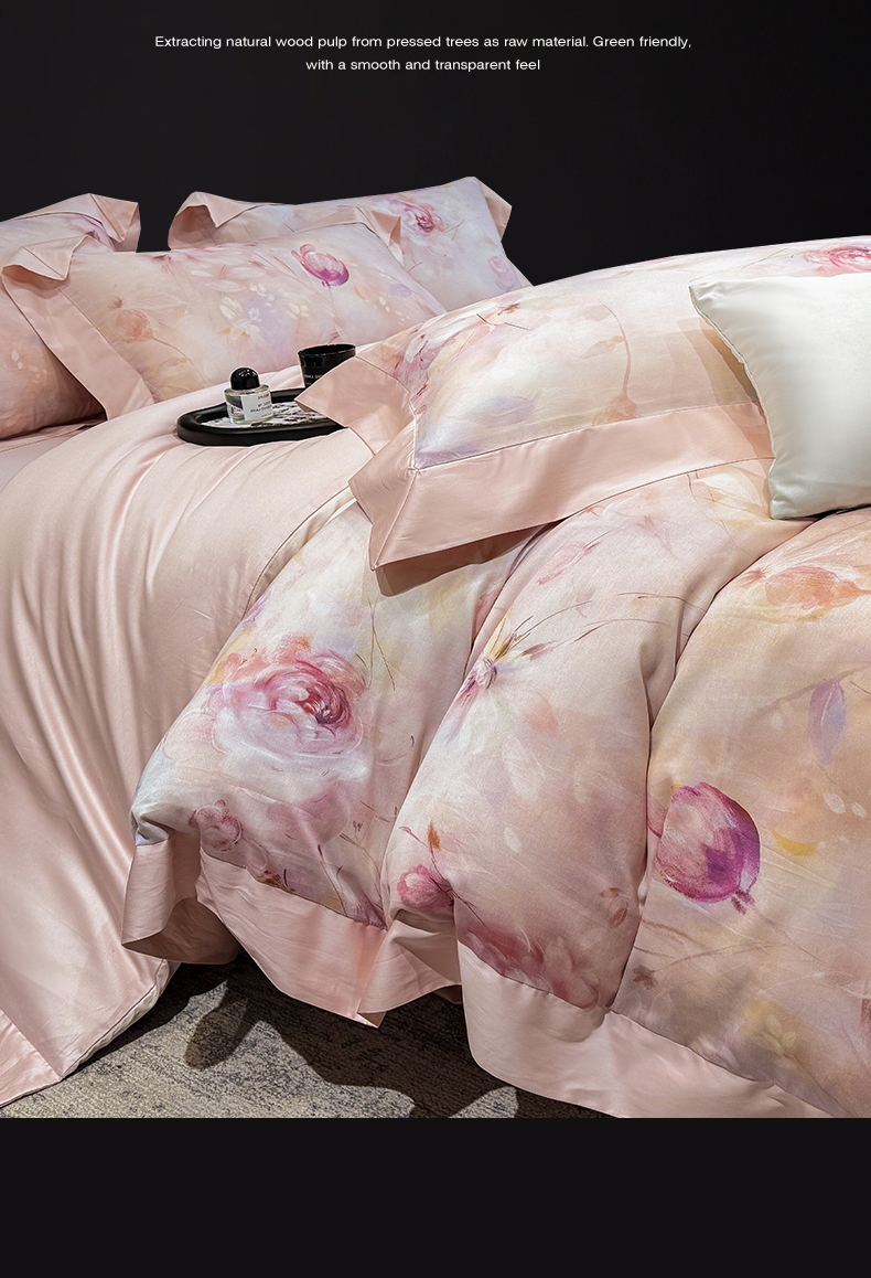 商品名称:绒棉世家 2025新款80S贡缎长绒棉拼角工艺数码印花四件套 含羞待放-緑
