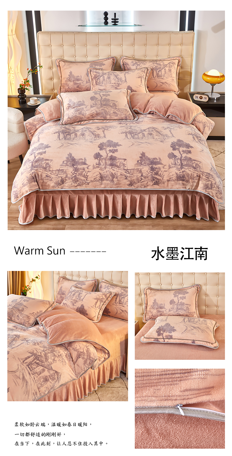商品名称:栩裕 2025新款7斤重牛奶金貂绒印花牛奶绒四件套 水墨江南