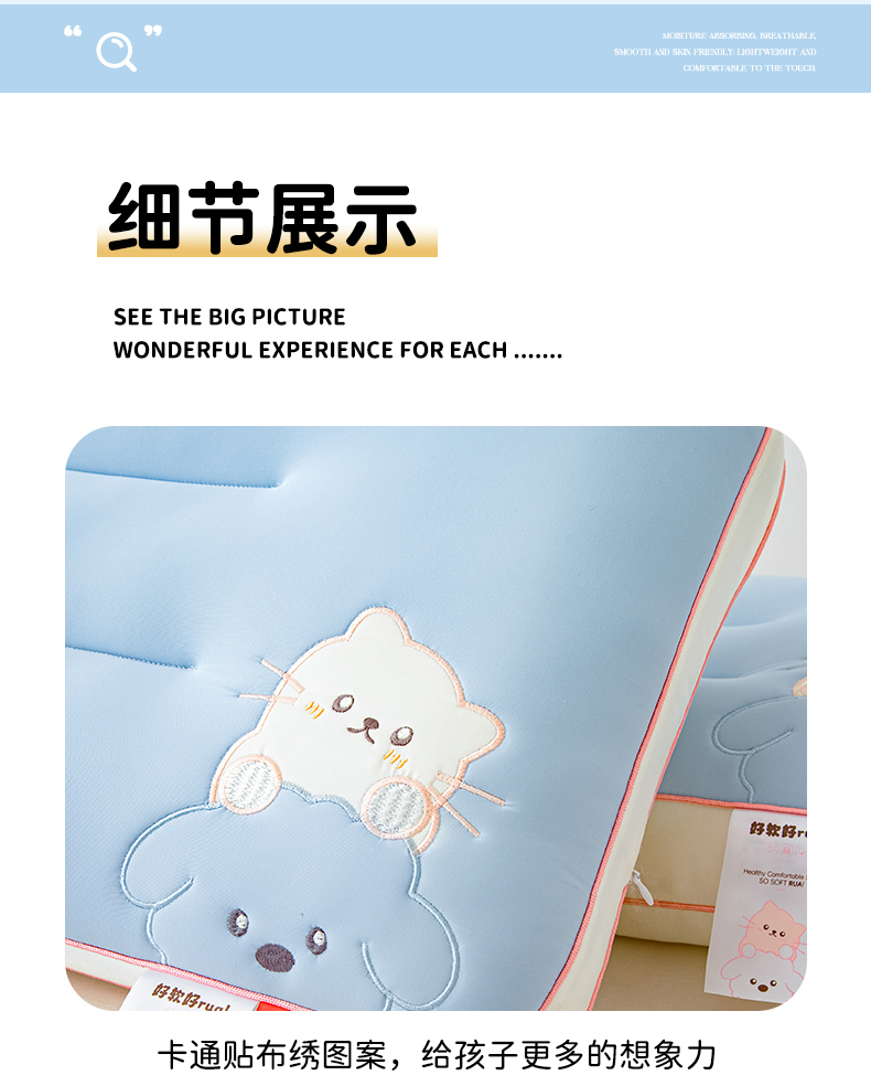 当前位置: 91家纺网 > 商品网购 > 枕头/枕芯/保健枕/颈椎枕 > 普通枕芯 > 织布人 2025新款枕芯A类裸感宠伴卡通幼儿园儿童枕头学生宿舍枕头枕芯 A类宠伴卡通枕-灰色 40x60cm/只