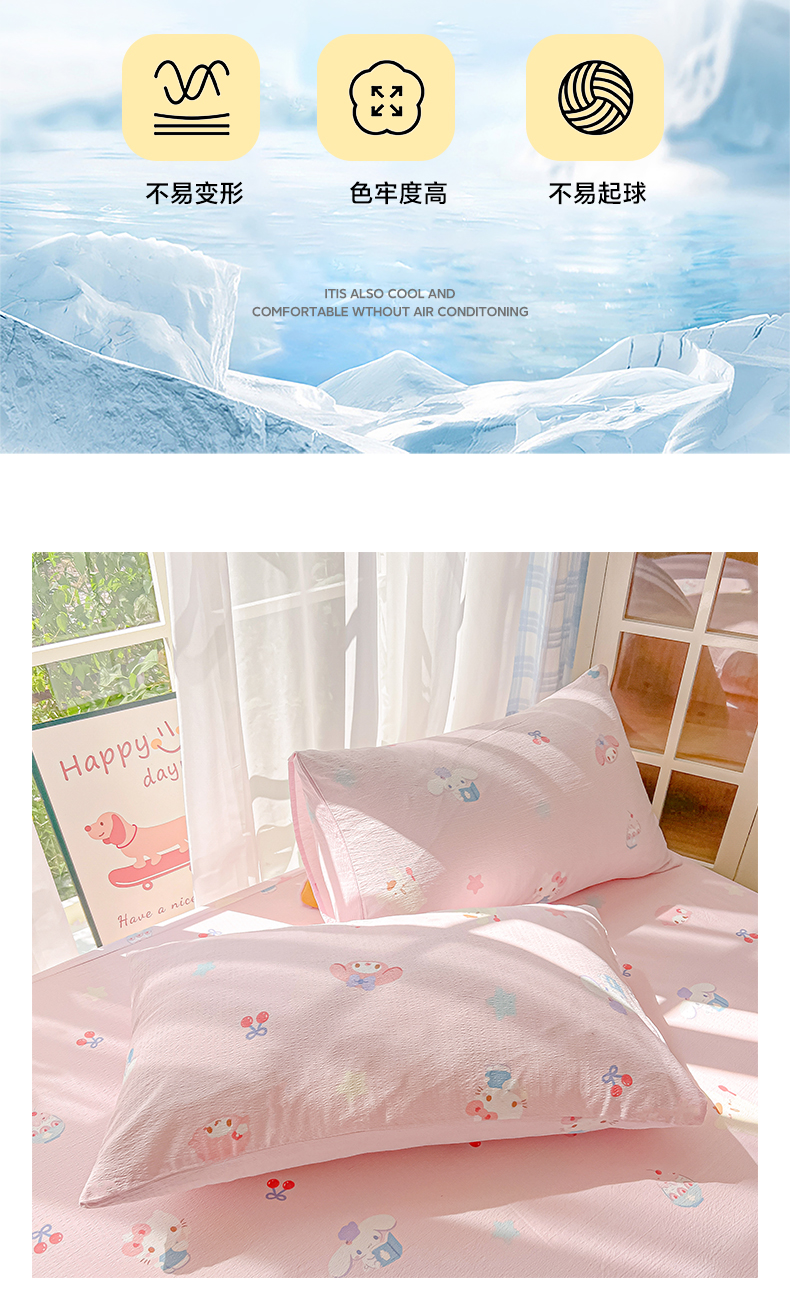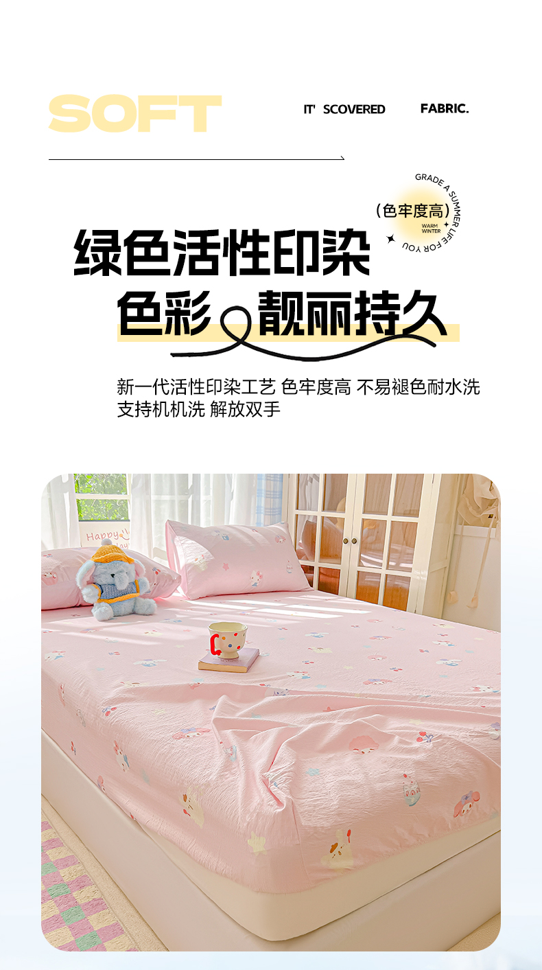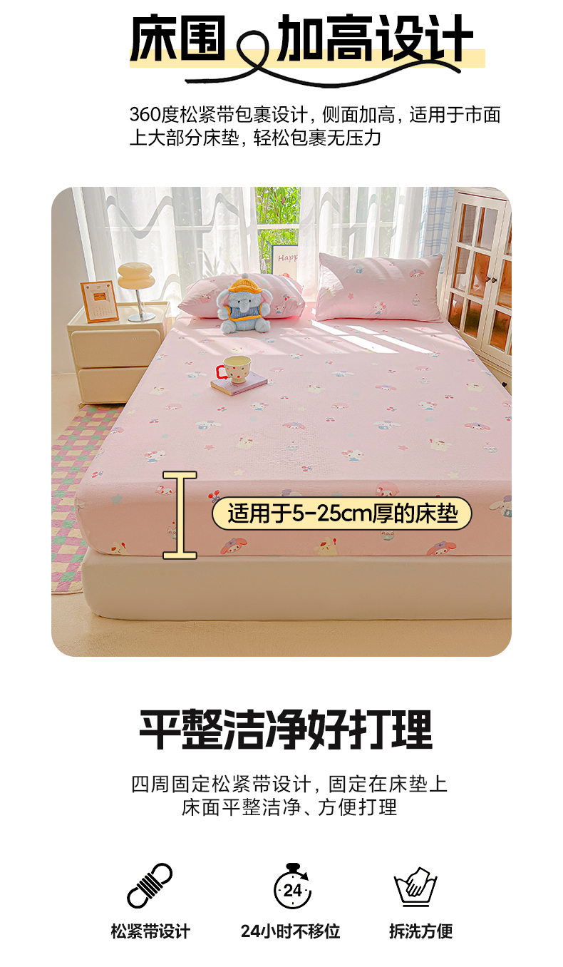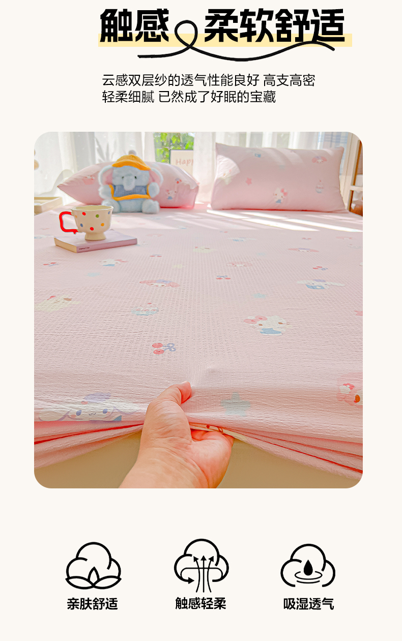 • 91家纺网 家纺一手货源 找家纺 韩巢家纺 2025新款卡通双层纱床笠单品床笠床笠单件热销款防滑床单床套枕套三件套 萌物家族