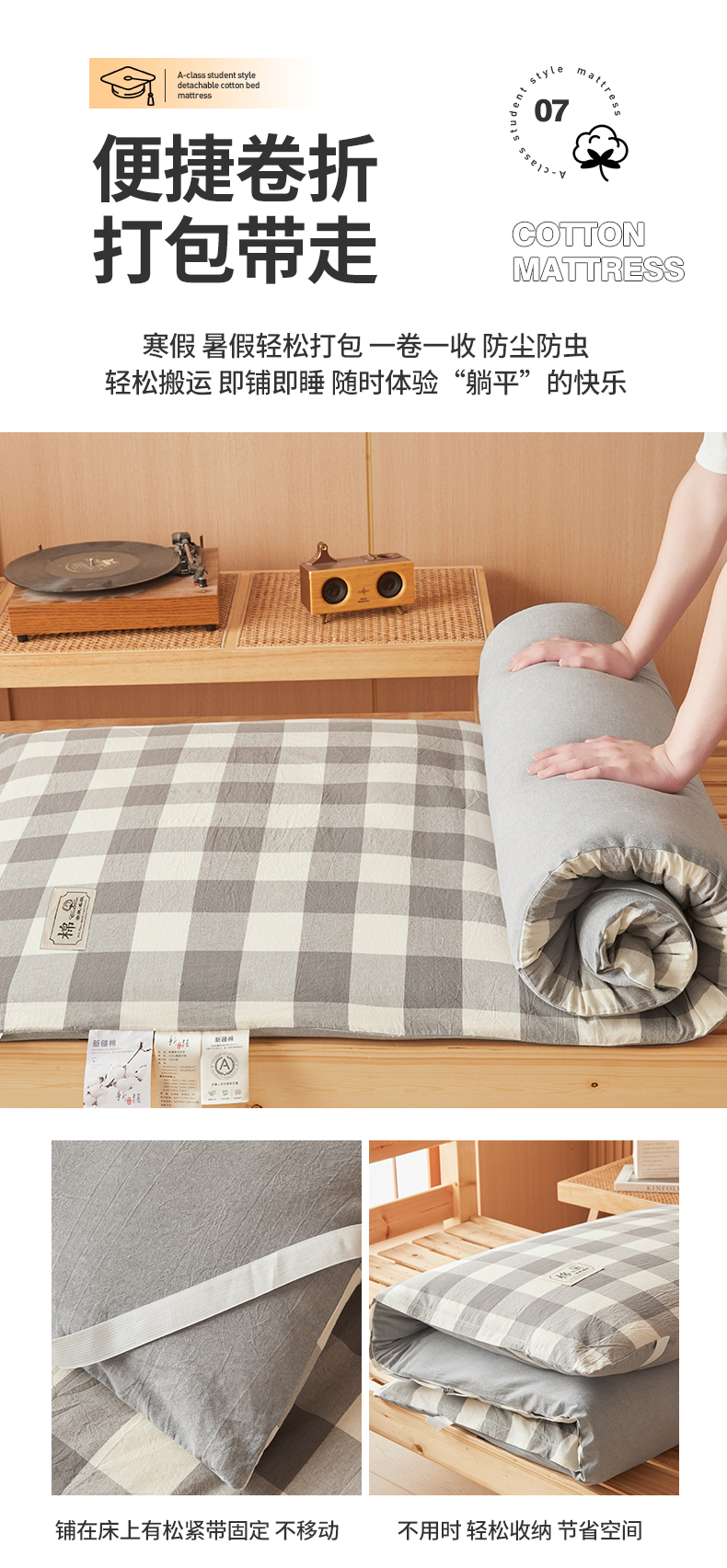 当前位置: 91家纺网 > 商品网购 > 床垫/床褥 > 普通床垫 > 西域种棉人·千百笠 2025新款A类可拆卸里外全棉100%新疆棉花被子冬被全棉单人学生宿舍加厚保暖春秋被芯被套棉被 褥子-水洗棉灰中格