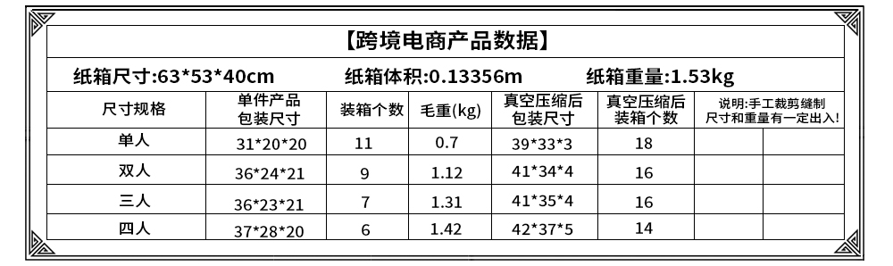 [{"spec_id":209127138,"price":"39.50","is_check_weight":0,"weight":"0.700","number":"761839s3357604g59384","goods_sku":"761839s3357604g59384","old_price":"79.00","sale_price":"0.00","point_price":0,"store_price":"0.00","spec":[{"sp_id":11,"sp_name":"\u989c\u8272\u5206\u7c7b","sp_format":2,"sp_value_id":59,"sp_value_name":"\u53cc\u8272\u7d2b","sp_value_image":{"id":999,"path":"https:\/\/img3.91jf.com\/ghelp\/2025\/20250718\/20250718135227_294120.jpeg"},"sp_value_video":{"id":0,"img":"","path":"","time":0,"download_num":0,"play_num":0},"sp_sort":11},{"sp_id":32,"sp_name":"\u89c4\u683c","sp_format":1,"sp_value_id":384,"sp_value_name":"31x20x20 cm\u5355\u4eba","sp_value_image":{"id":0,"path":""},"sp_value_video":{"id":0,"img":"","path":"","time":0,"download_num":0,"play_num":0},"sp_sort":5}],"storage":500},{"spec_id":209127140,"price":"49.50","is_check_weight":0,"weight":"1.120","number":"761839s3357604g59385","goods_sku":"761839s3357604g59385","old_price":"99.00","sale_price":"0.00","point_price":0,"store_price":"0.00","spec":[{"sp_id":11,"sp_name":"\u989c\u8272\u5206\u7c7b","sp_format":2,"sp_value_id":59,"sp_value_name":"\u53cc\u8272\u7d2b","sp_value_image":{"id":999,"path":"https:\/\/img3.91jf.com\/ghelp\/2025\/20250718\/20250718135227_294120.jpeg"},"sp_value_video":{"id":0,"img":"","path":"","time":0,"download_num":0,"play_num":0},"sp_sort":11},{"sp_id":32,"sp_name":"\u89c4\u683c","sp_format":1,"sp_value_id":385,"sp_value_name":"36x24x21cm\u53cc\u4eba","sp_value_image":{"id":0,"path":""},"sp_value_video":{"id":0,"img":"","path":"","time":0,"download_num":0,"play_num":0},"sp_sort":6}],"storage":500},{"spec_id":209127142,"price":"59.50","is_check_weight":0,"weight":"1.310","number":"761839s3357604g59386","goods_sku":"761839s3357604g59386","old_price":"119.00","sale_price":"0.00","point_price":0,"store_price":"0.00","spec":[{"sp_id":11,"sp_name":"\u989c\u8272\u5206\u7c7b","sp_format":2,"sp_value_id":59,"sp_value_name":"\u53cc\u8272\u7d2b","sp_value_image":{"id":999,"path":"https:\/\/img3.91jf.com\/ghelp\/2025\/20250718\/20250718135227_294120.jpeg"},"sp_value_video":{"id":0,"img":"","path":"","time":0,"download_num":0,"play_num":0},"sp_sort":11},{"sp_id":32,"sp_name":"\u89c4\u683c","sp_format":1,"sp_value_id":386,"sp_value_name":"36x23x21cm\u4e09\u4eba","sp_value_image":{"id":0,"path":""},"sp_value_video":{"id":0,"img":"","path":"","time":0,"download_num":0,"play_num":0},"sp_sort":7}],"storage":500},{"spec_id":209127144,"price":"69.50","is_check_weight":0,"weight":"1.420","number":"761839s3357604g59387","goods_sku":"761839s3357604g59387","old_price":"139.00","sale_price":"0.00","point_price":0,"store_price":"0.00","spec":[{"sp_id":11,"sp_name":"\u989c\u8272\u5206\u7c7b","sp_format":2,"sp_value_id":59,"sp_value_name":"\u53cc\u8272\u7d2b","sp_value_image":{"id":999,"path":"https:\/\/img3.91jf.com\/ghelp\/2025\/20250718\/20250718135227_294120.jpeg"},"sp_value_video":{"id":0,"img":"","path":"","time":0,"download_num":0,"play_num":0},"sp_sort":11},{"sp_id":32,"sp_name":"\u89c4\u683c","sp_format":1,"sp_value_id":387,"sp_value_name":"37x28x20cm\u56db\u4eba","sp_value_image":{"id":0,"path":""},"sp_value_video":{"id":0,"img":"","path":"","time":0,"download_num":0,"play_num":0},"sp_sort":8}],"storage":500}]
