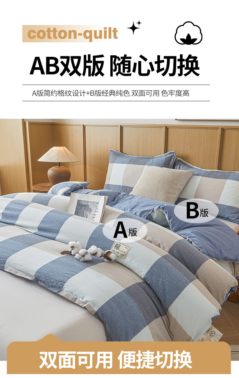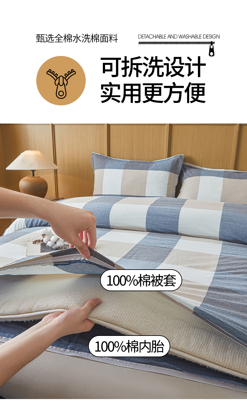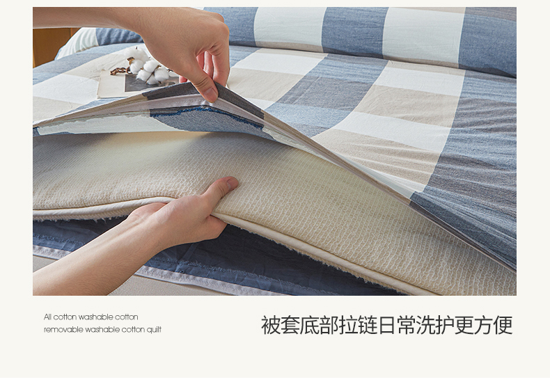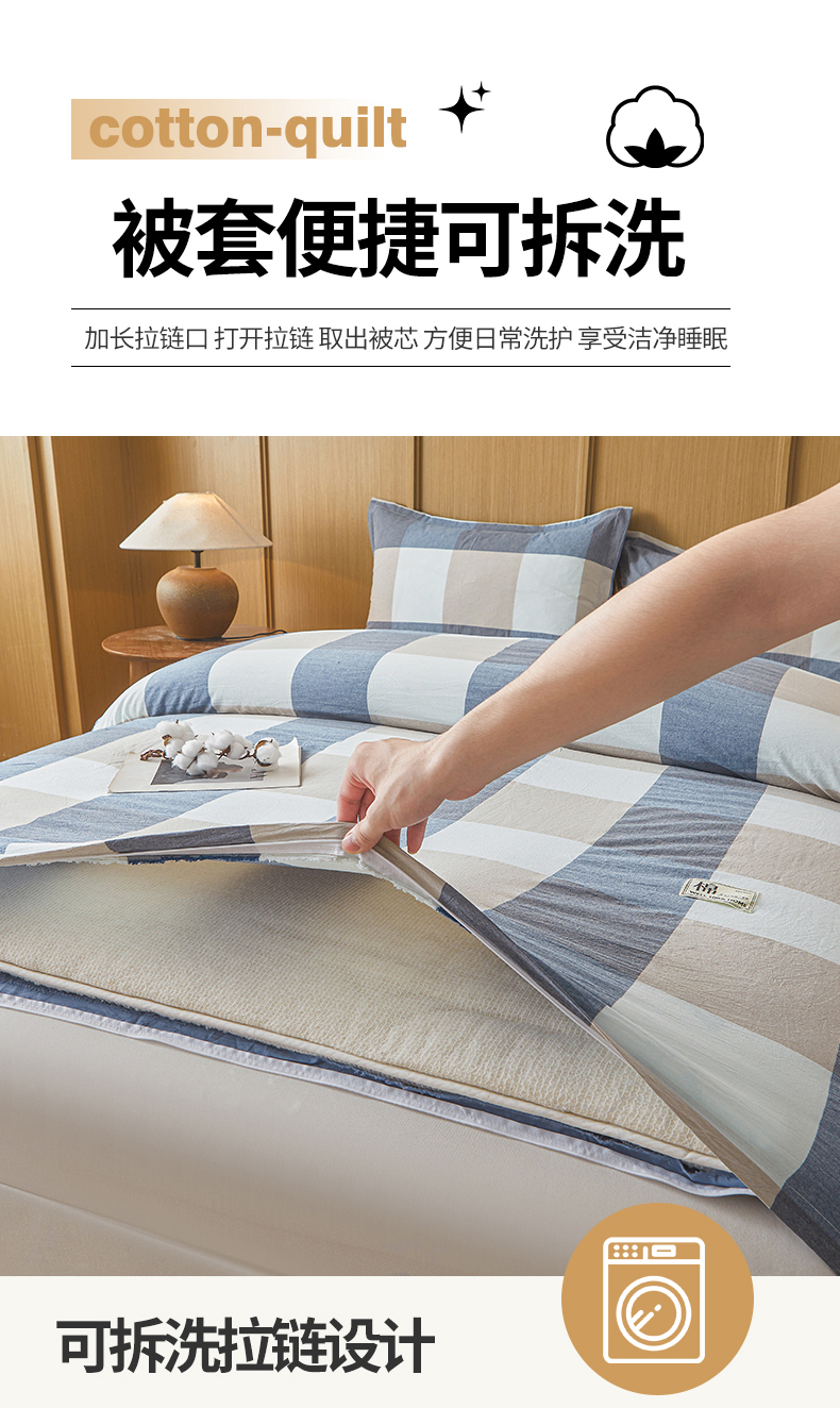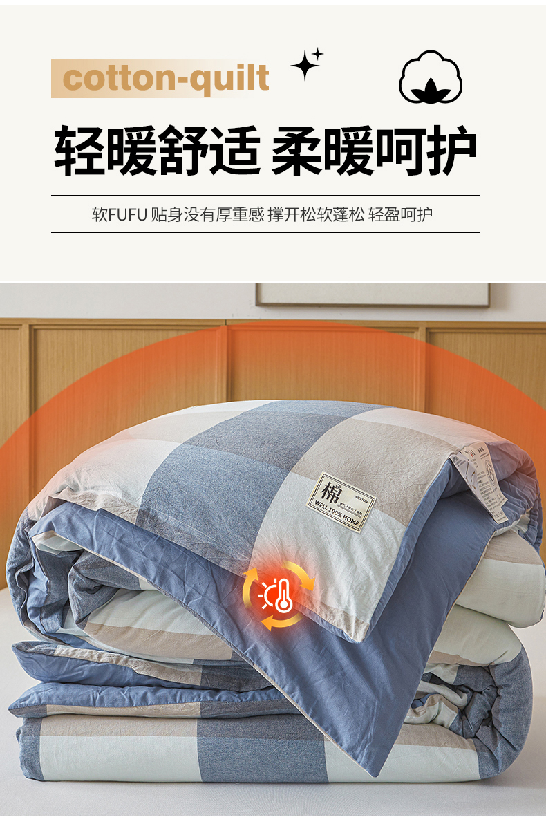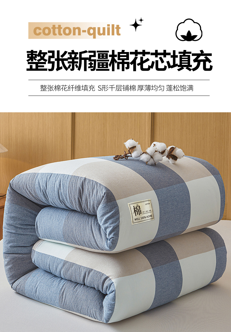 • 91家纺网 家纺一手货源 找家纺 西域种棉人·千百笠 2025新款A类可拆卸里外全棉100%新疆棉花被子冬被全棉单人学生宿舍加厚保暖春 蓝大格