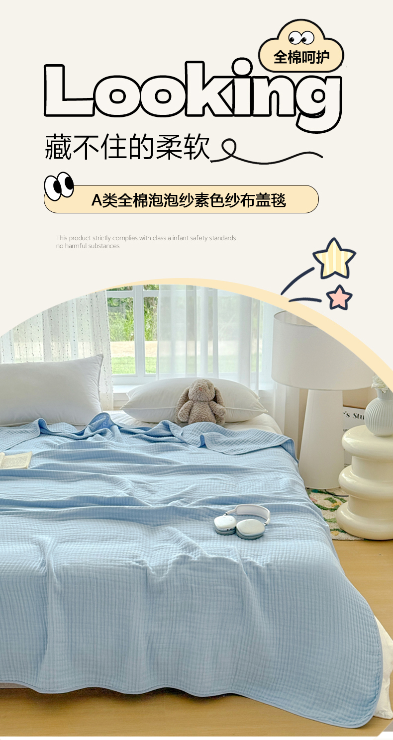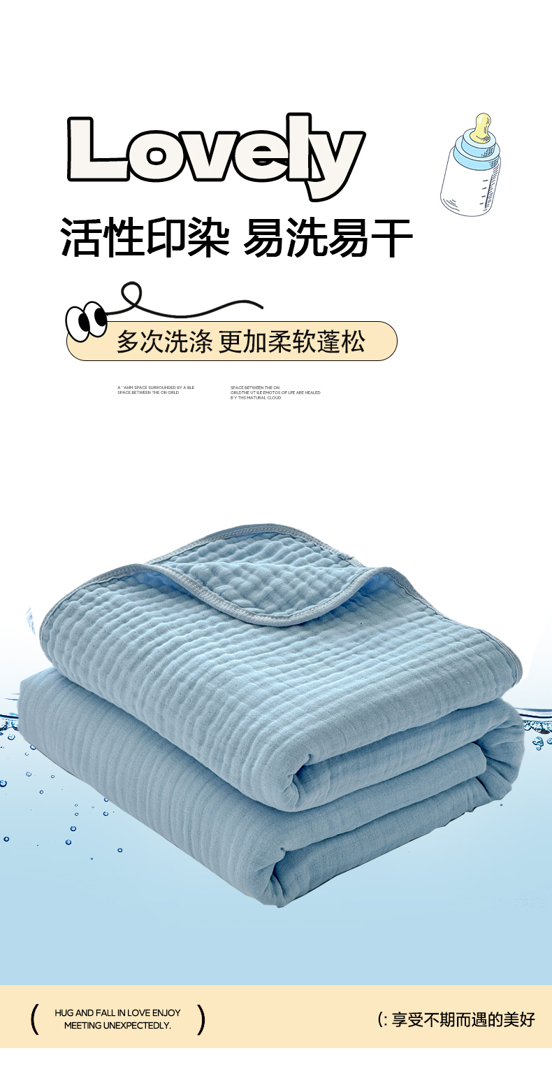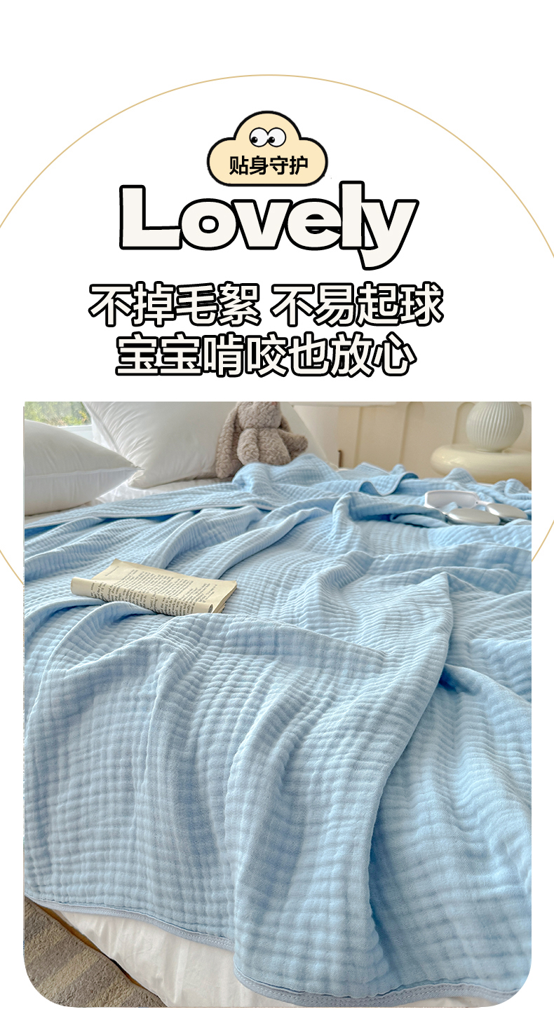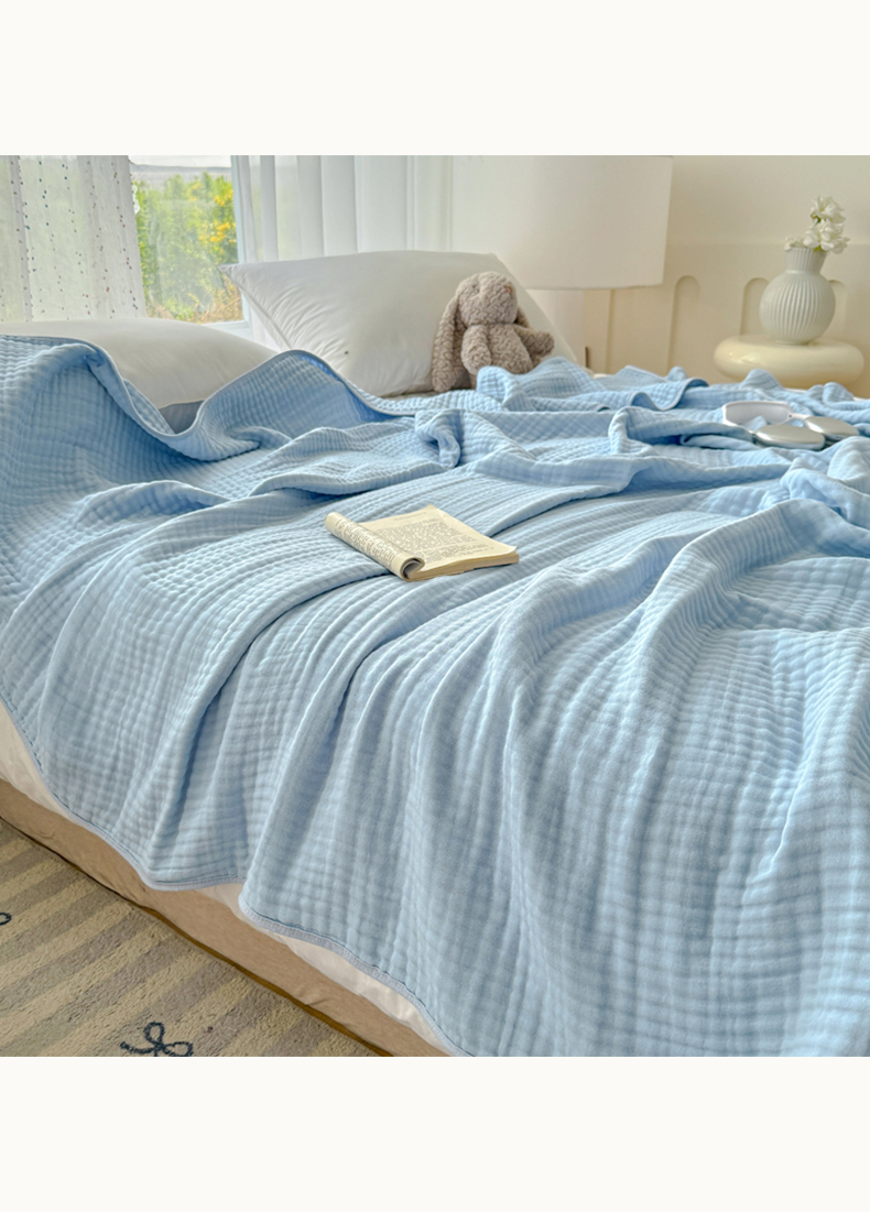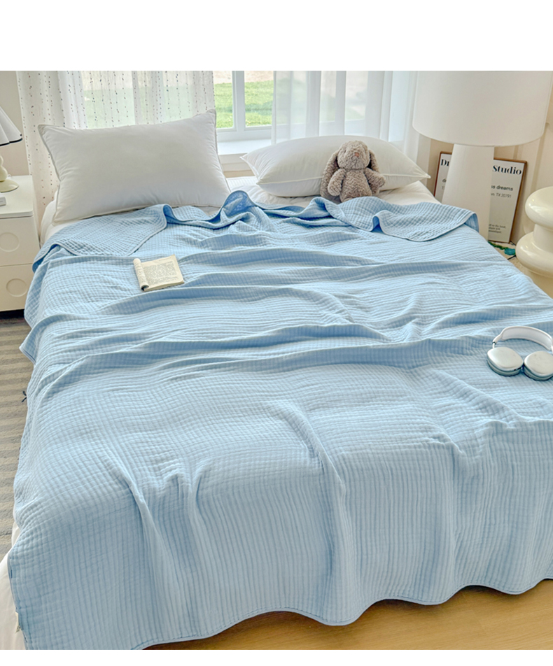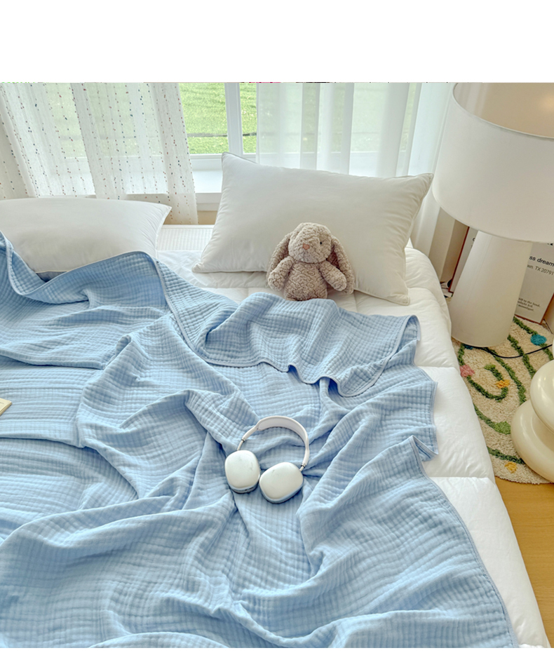 商品名称:棠薇家纺 2025新款A类日韩无印风泡泡纱六层素色纯色盖毯毛巾被夏被皱皱毯婴幼毯浴巾 泡泡纱天蓝