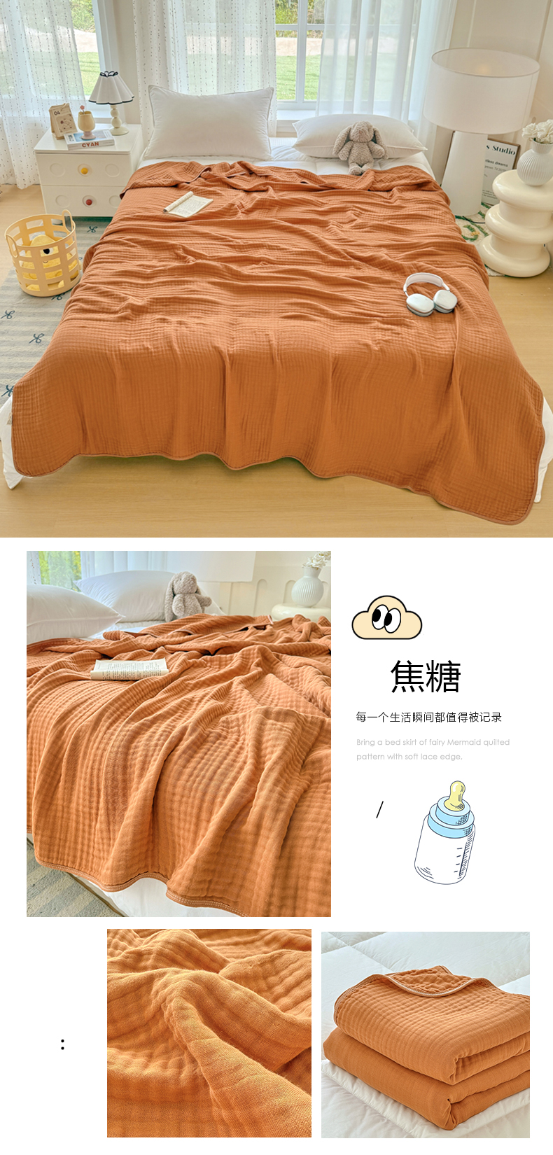 (总)棠薇家纺 2025新款全棉彩纱双层纱夏被三层纱多功能毛巾被纱布毯细纱床盖,叶见倾心,彩色仙贝,拉夏尔,舞动银杏,金枝玉叶