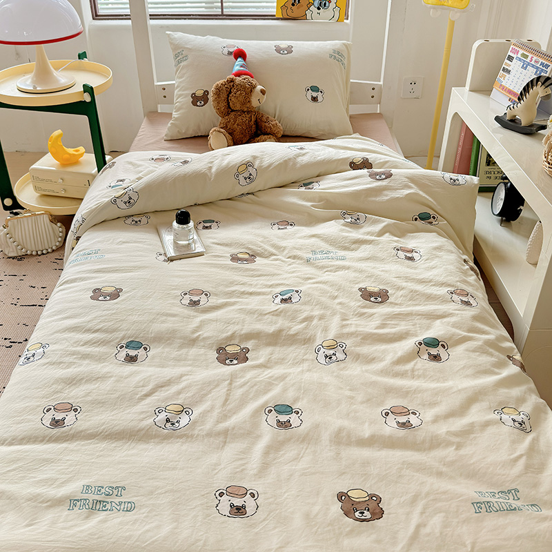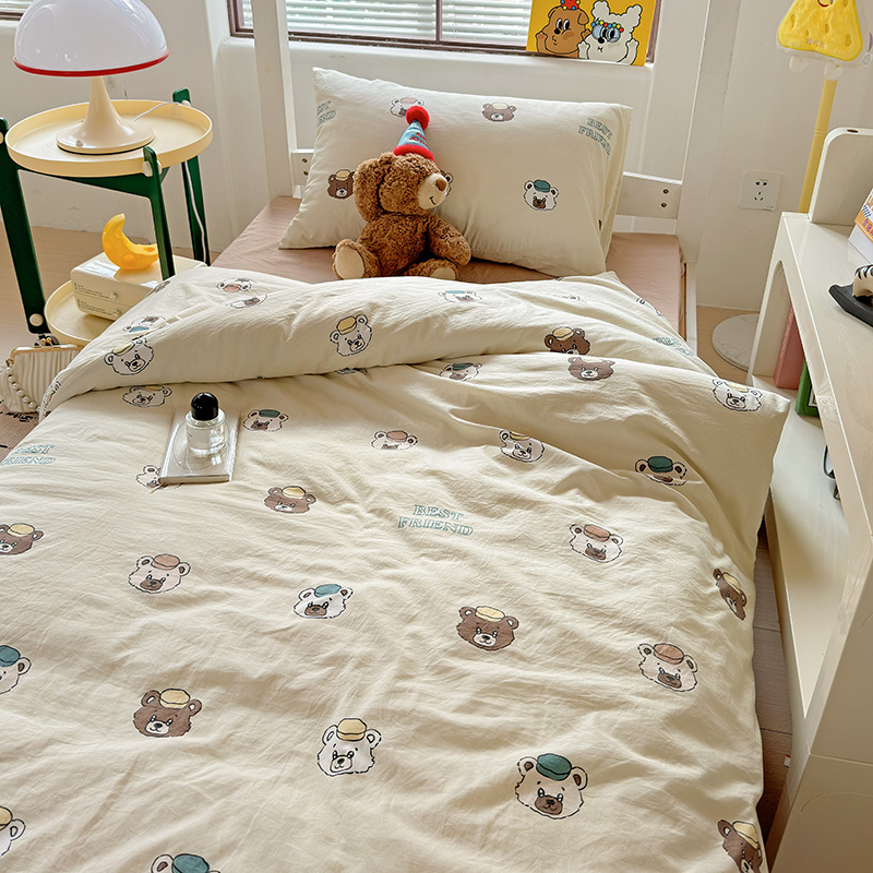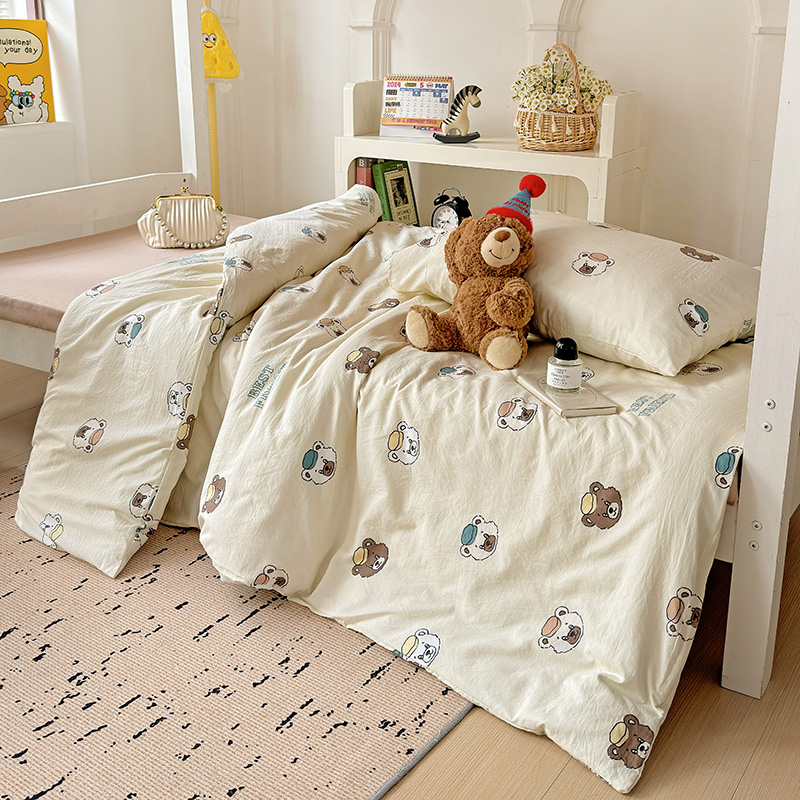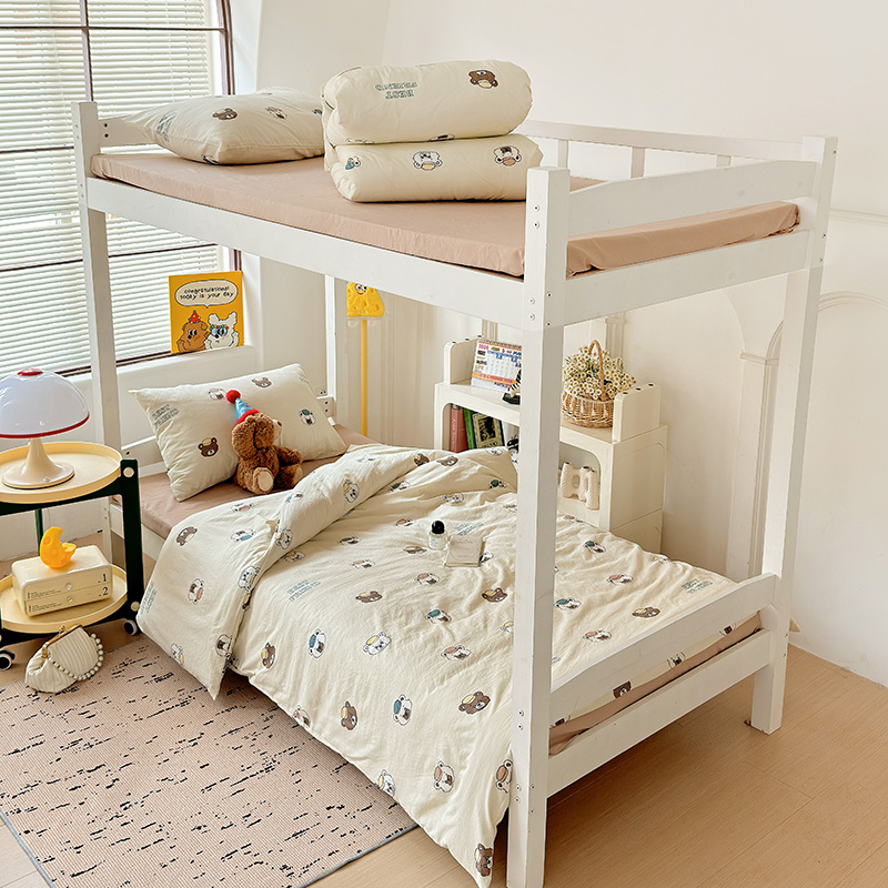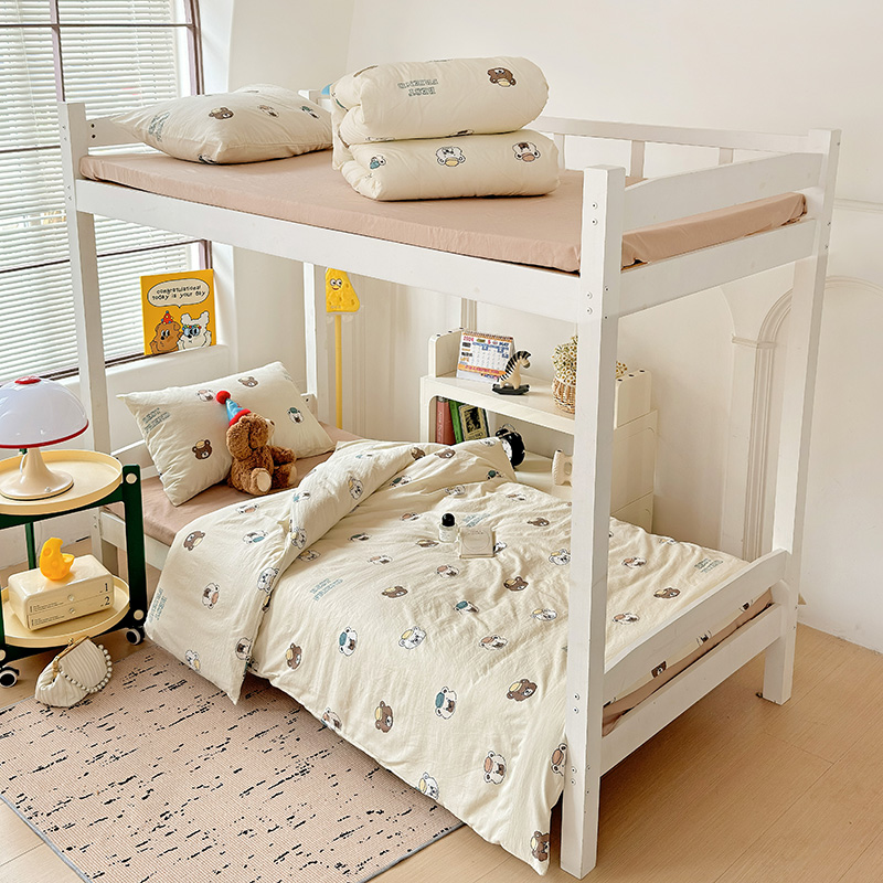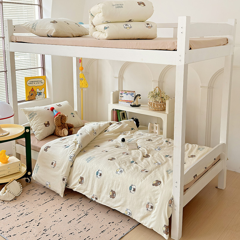 商品名称:港岛妹妹 2025新款云朵水洗工艺学生床宿舍上下铺三件套 熊熊公仔
