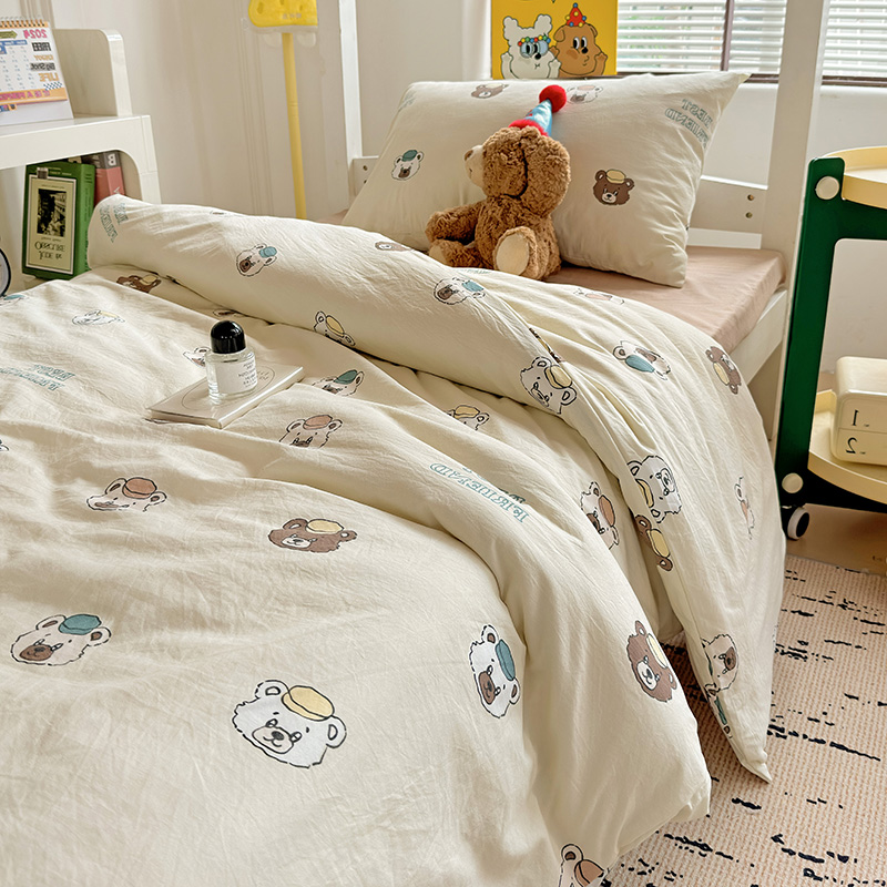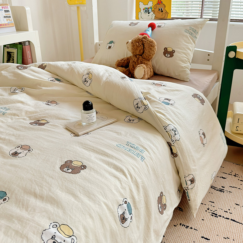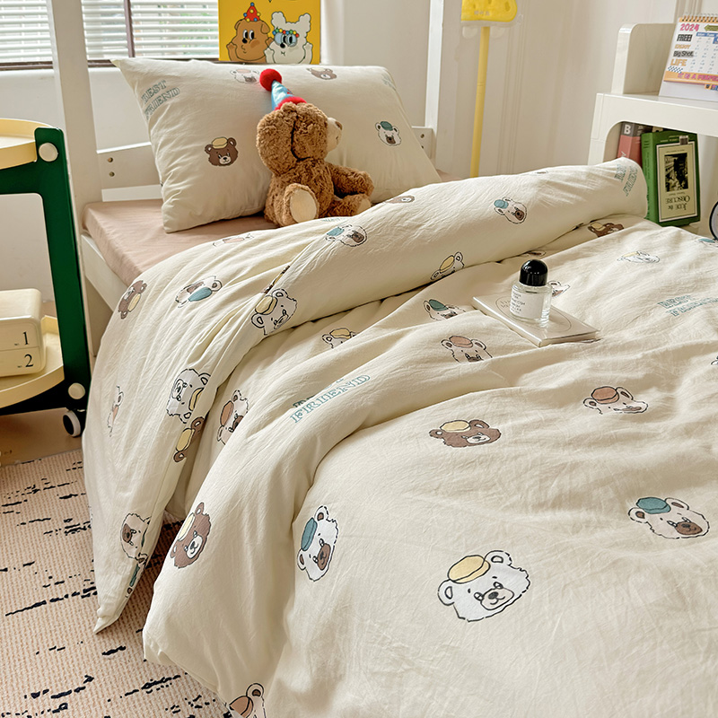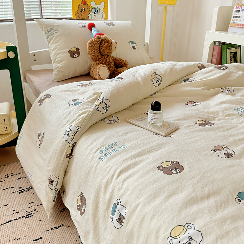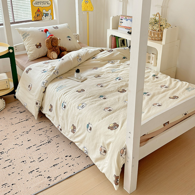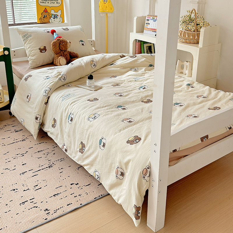 商品名称:港岛妹妹 2025新款云朵水洗工艺学生床宿舍上下铺三件套 熊熊公仔