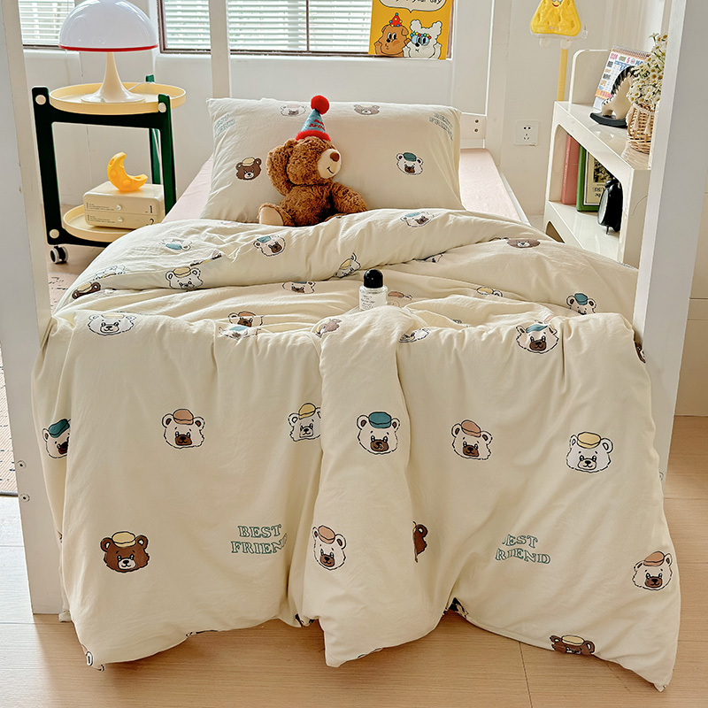 港岛妹妹 2025新款云朵水洗工艺学生床宿舍上下铺三件套 熊熊公仔