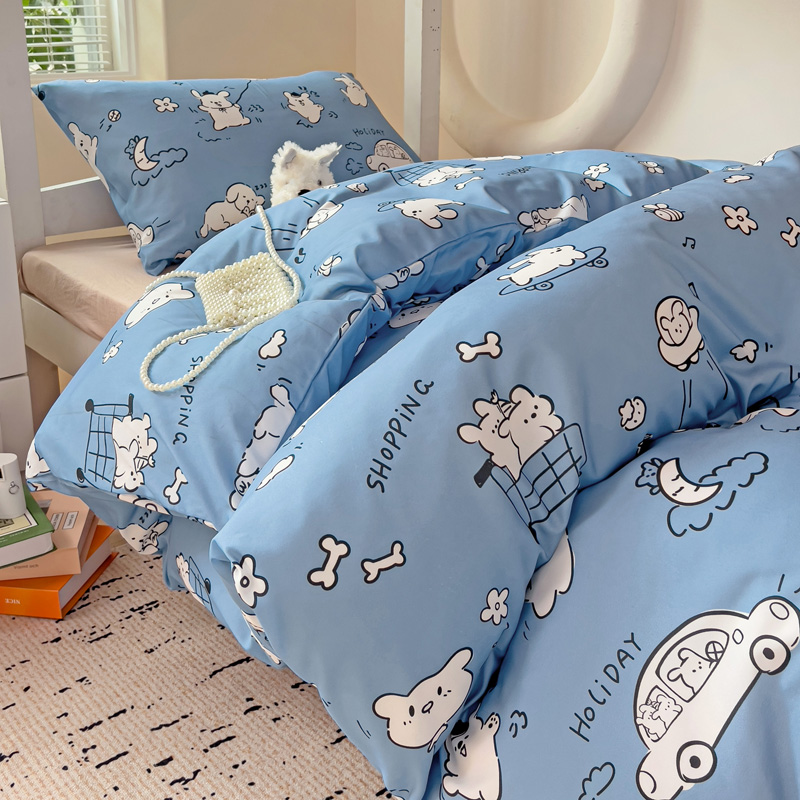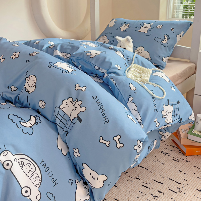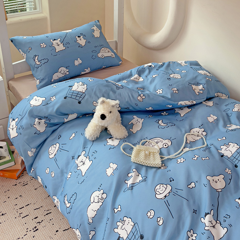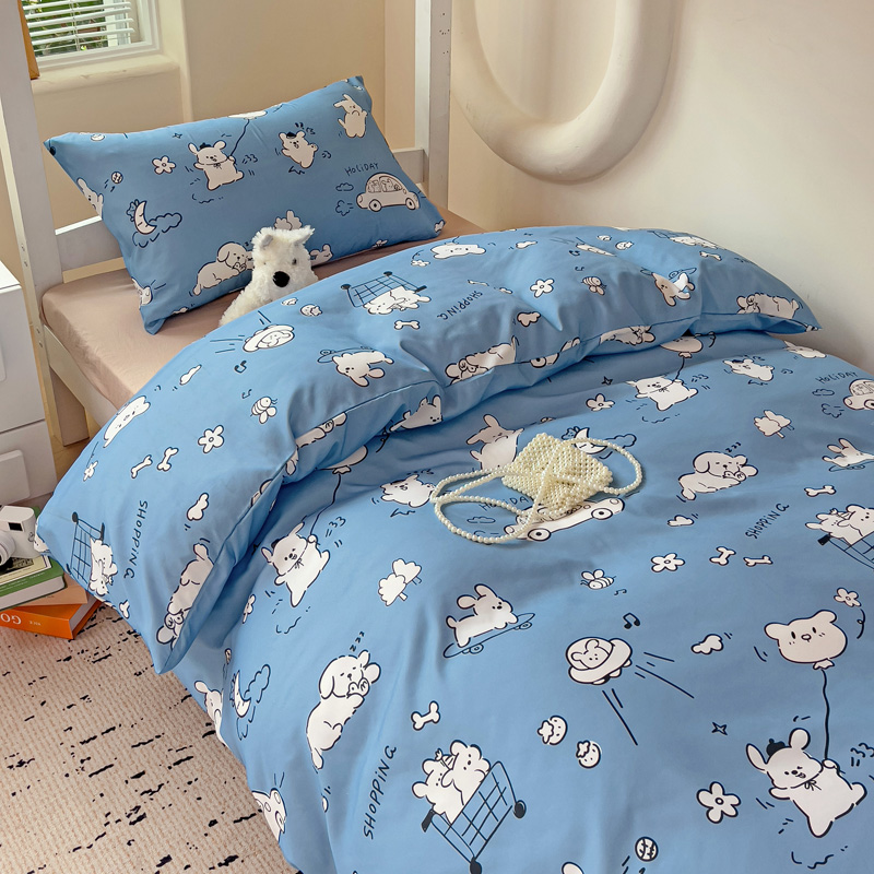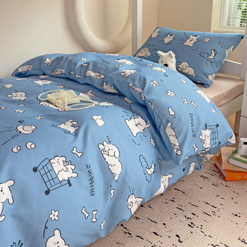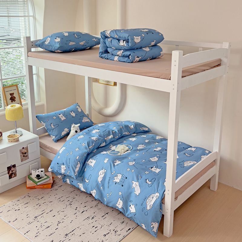 商品名称:海岛哥哥 2025新款云朵水洗棉学生床宿舍上下铺三件套 狗狗乐园